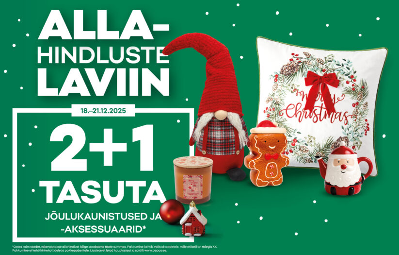 Pühad algavad PEPCOS! Avasta kaunid jõulukaunistused, teemakohased köögitarvikud ning dekoratsioonid ja aksessuaarid, mis muudavad pühade ettevalmistused veelgi nauditavamaks.