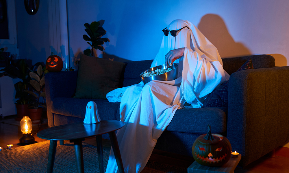 See ei ole tavaline kodune filmimaraton. Halloweeni puhul tasub meeleolu üles kerida: hämardada tuled, süüdata mõned küünlad ja muuta elutuba „õudsete” dekoratsioonidega meeleolukaks õuduskinoks. Võite korraldada klassikute maratoni: alates filmidest „Hiilgus” ja „Elm Streeti luupainaja” kuni kaasaegsete hittideni nagu „IT” ning „Kohalolek”. Kui aga eelistate midagi kergemat, valige lõbusad õudusfilmid stiilis „Tondipüüdjad” või „Addamsite perekond”.