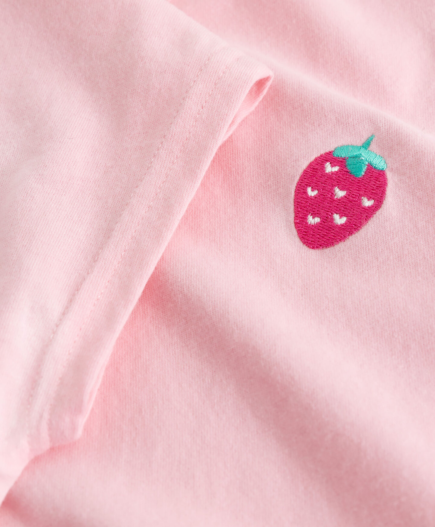 See 100% puuvillane beebi T-särk on moemaailma tõeline pärl. Maasikamotiiv lisab sellele veidi võlu. Puuvillakiud on hingavad ja puudutamisel uskumatult pehmed.