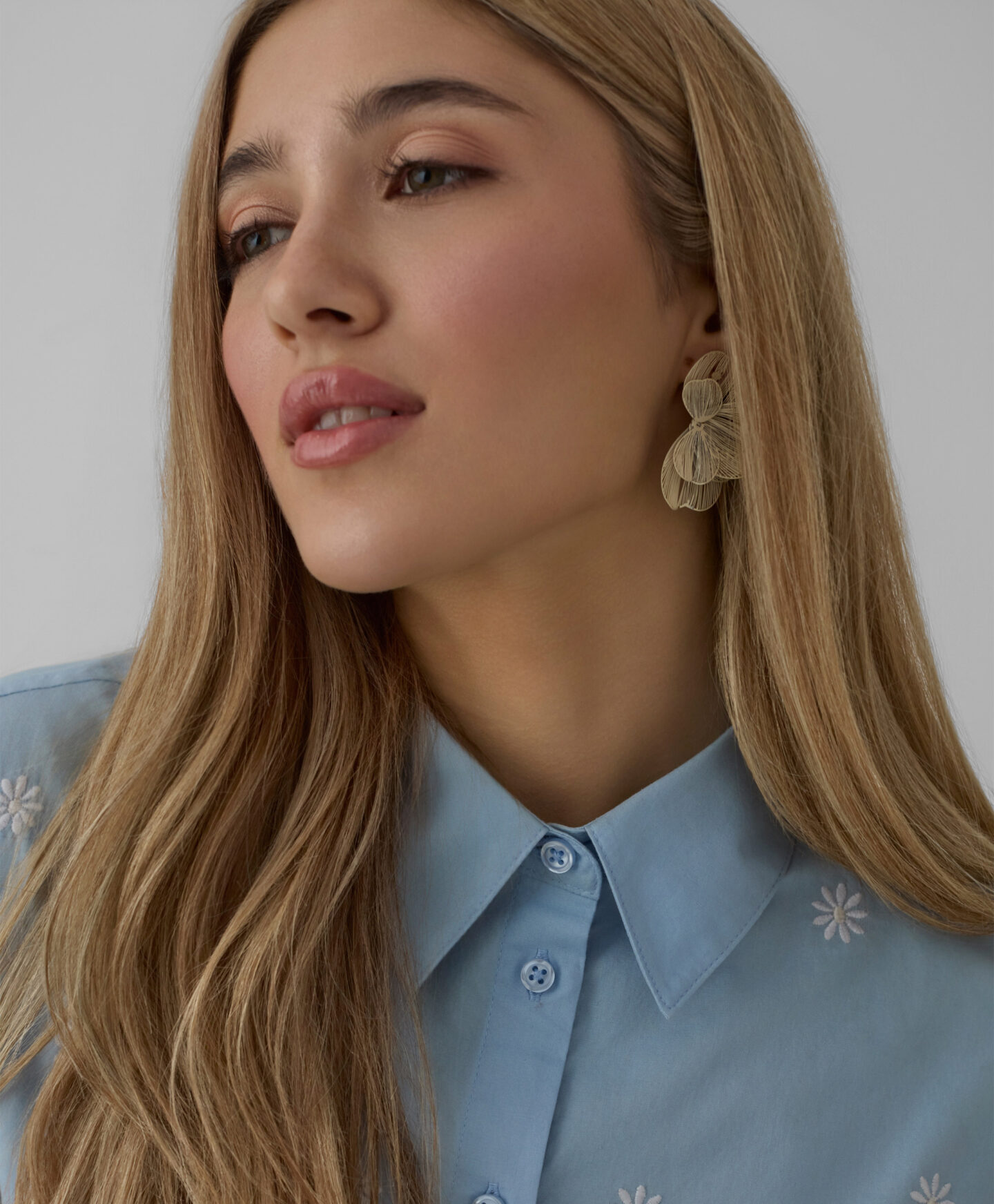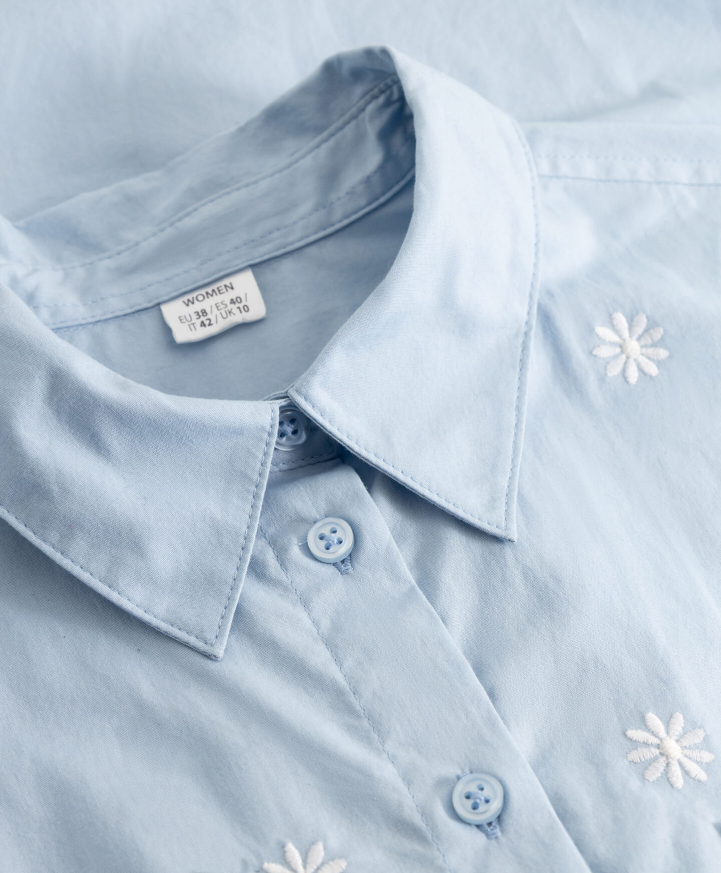 100% puuvillasel lillelisel pluusil on klassikaline krae. See on võrratu valik elegantse riietuse jaoks. Puuvillane kangas laseb nahal hingata ja kindlustab kandmismugavuse. Lilleline muster mõjub värskelt ja kelmikalt. Pane see selga näiteks kontorisse või sõpradega kokku saamiseks.