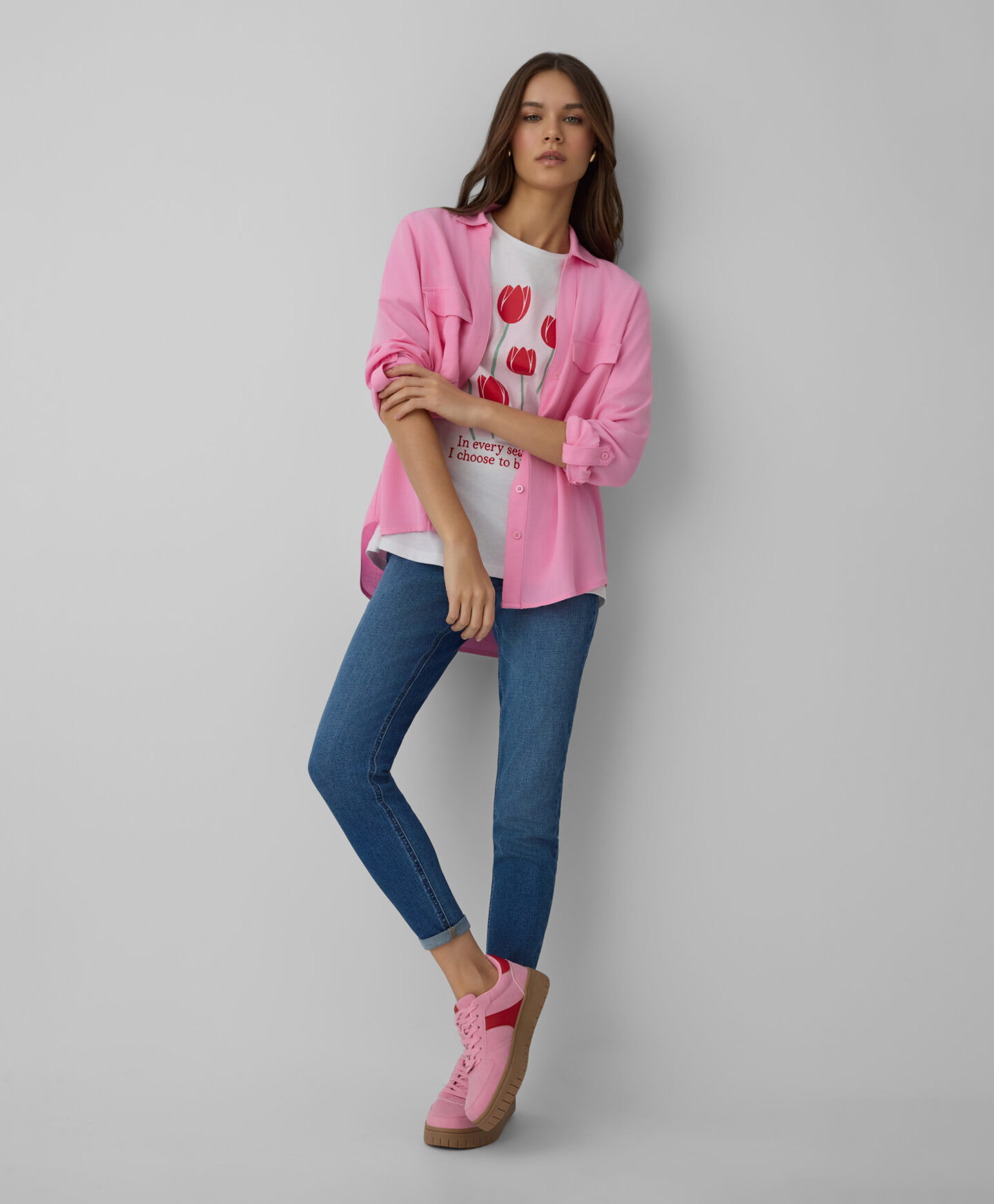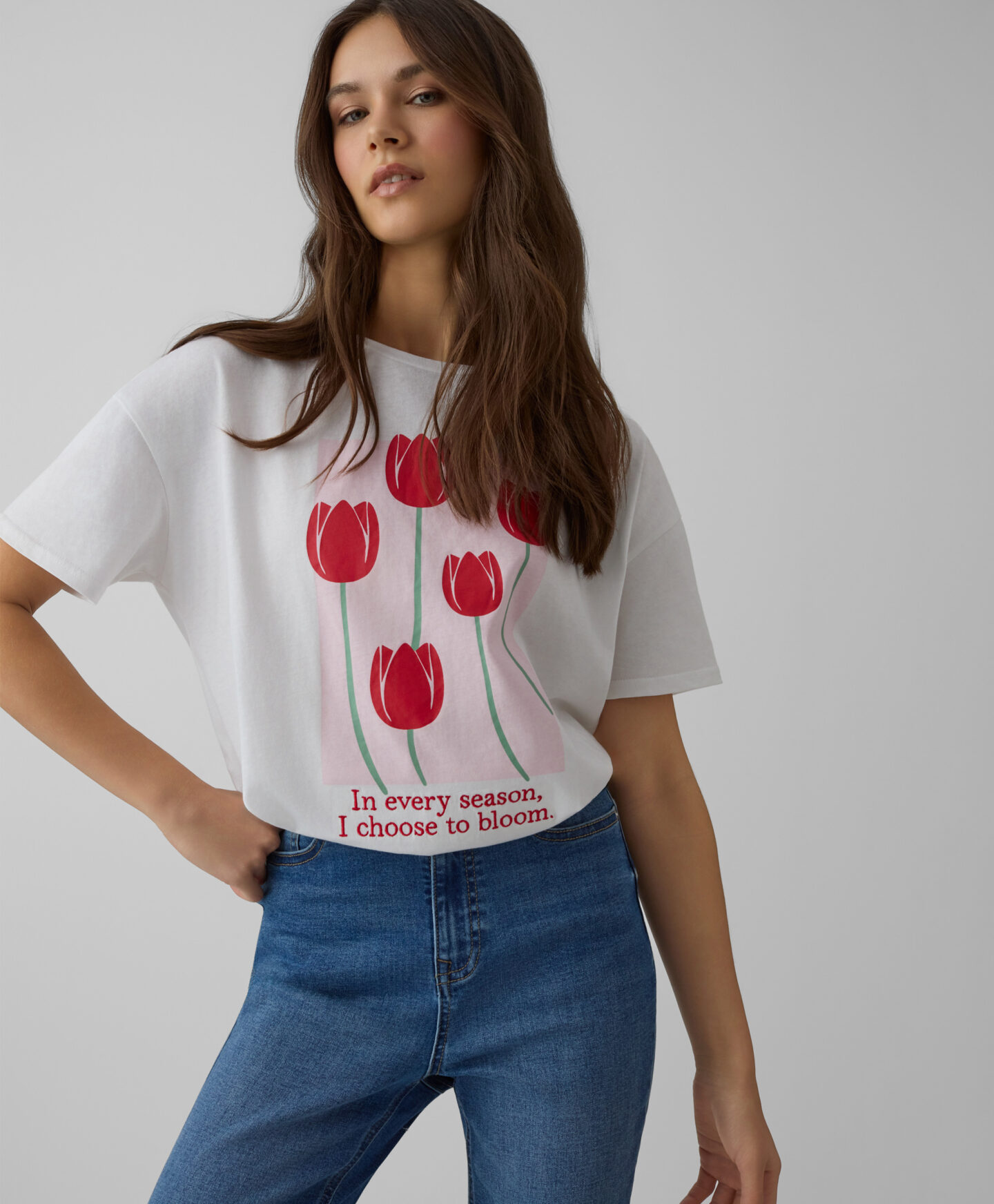 Lühikeste varrukatega 100% puuvillane lilleline T-särk sobib hästi igapäevaseks kandmiseks. See on väga mitmekülgne. Pehme kangas laseb nahal hingata ja on mugav. Särgiesist kaunistav lillemuster lisab värskust igale riietusele.