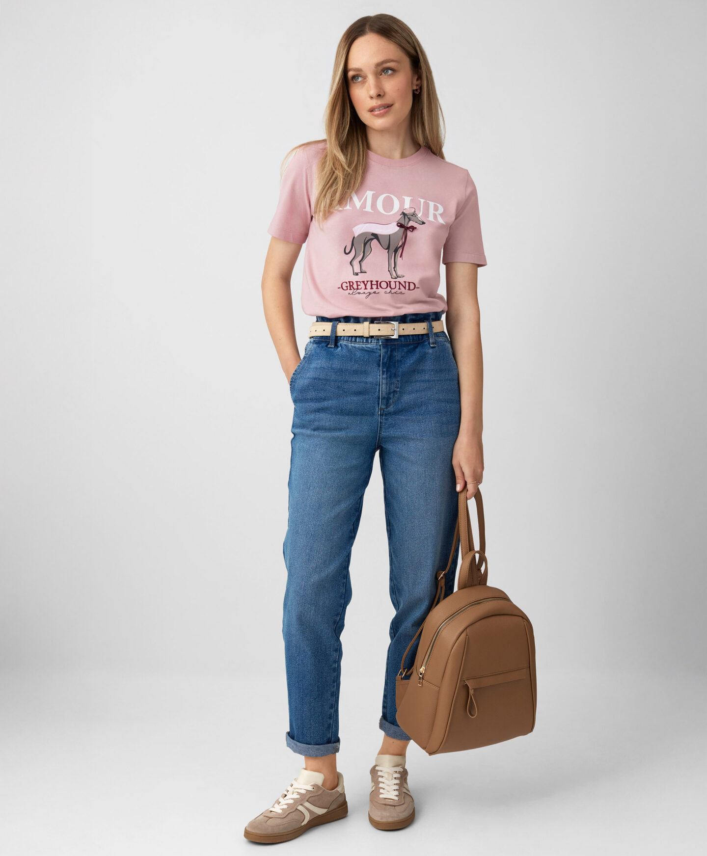100% puuvillane pealetrükiga T-särk tagab mugavuse ja stiilse välimuse. Pehme puuvill tundub seljas mugav ja T-särgi trendikas pealetrükk mõjub omapäraselt. Sobib hästi igapäevaseks riietuseks.