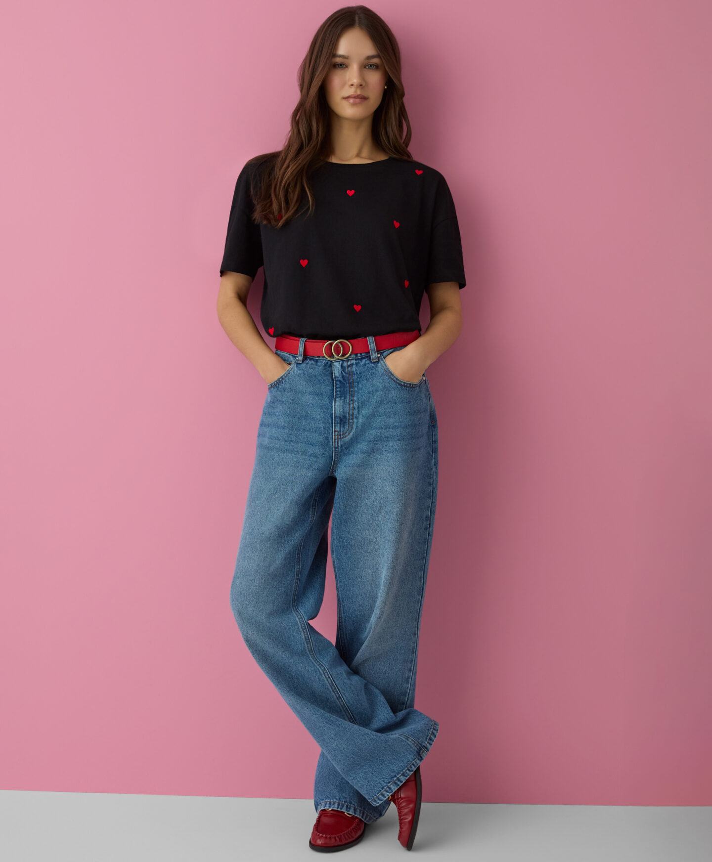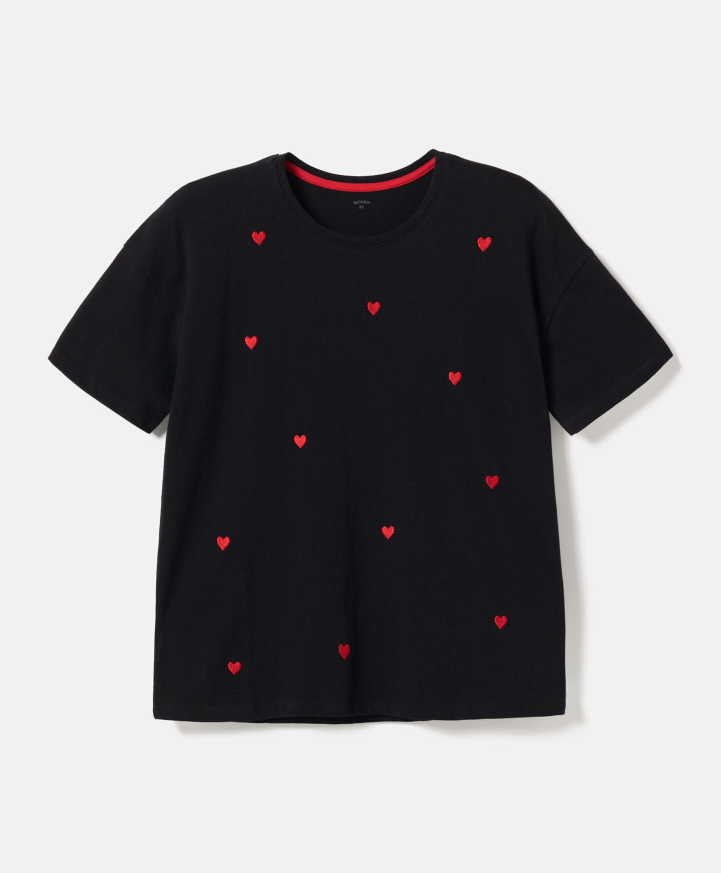 Südametega 100% puuvillane T-särk on ülimugav. Klassikaline lõige, pehme materjal ja armas muster teevad sellest ideaalse valiku igaks päevaks.