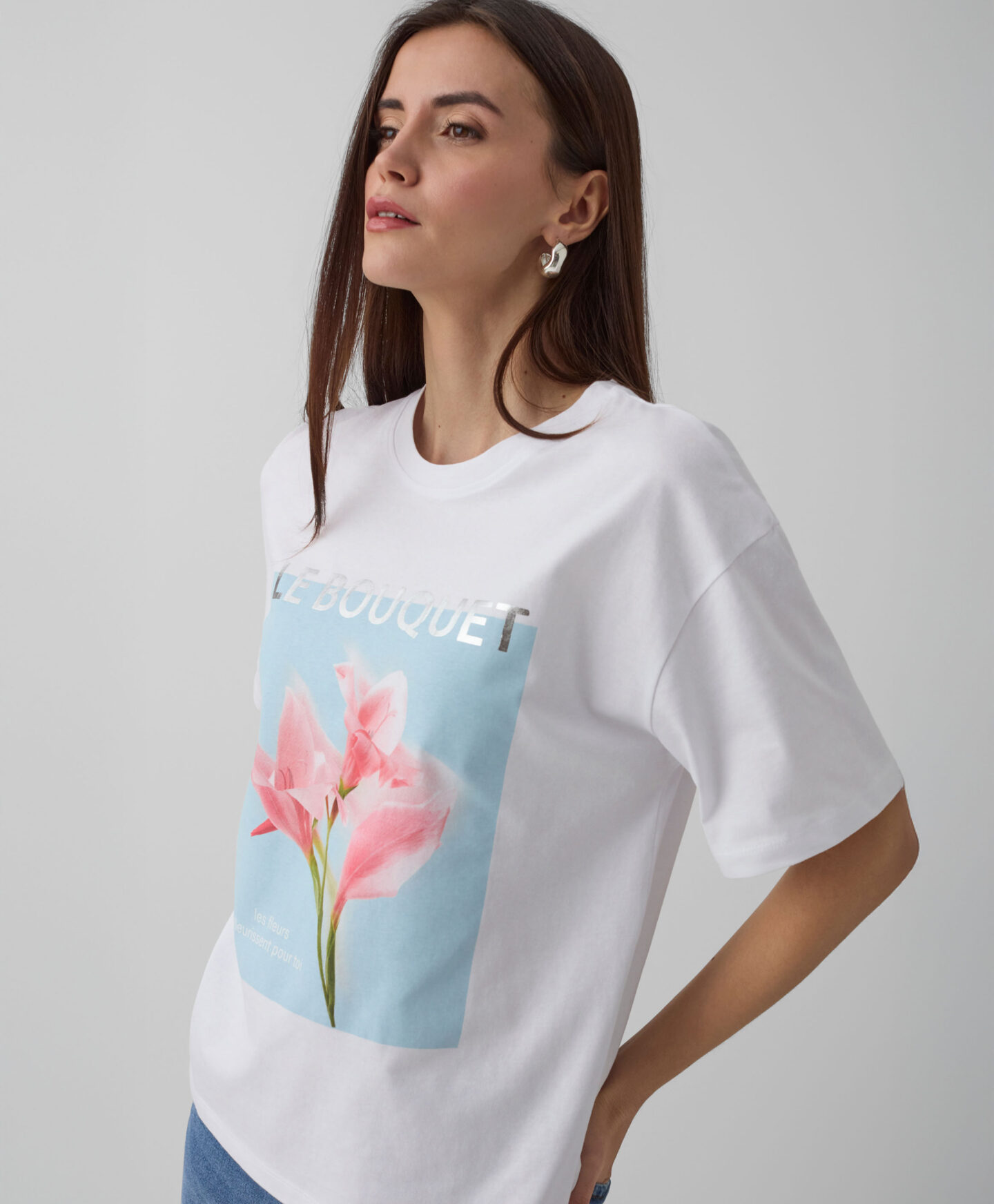 100% puuvillane lillegraafikaga T-särk toob garderoobi värskust ja naiselikku kergust. Pehme ning hingav kangas pakub meeldivat kandmiskogemust, samal ajal kui pilkupüüdev trükk lisab stiilile erilise aktsendi. Kombineerituna teksadega loob see mugava ja mitmekülgse riietuse, mis sobib suurepäraselt nii sõpradega kohtumiseks kui ka igapäevasteks käikudeks.