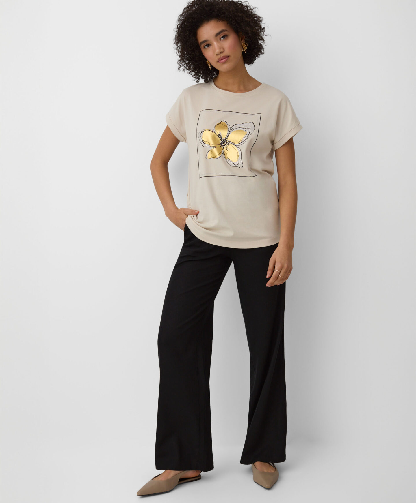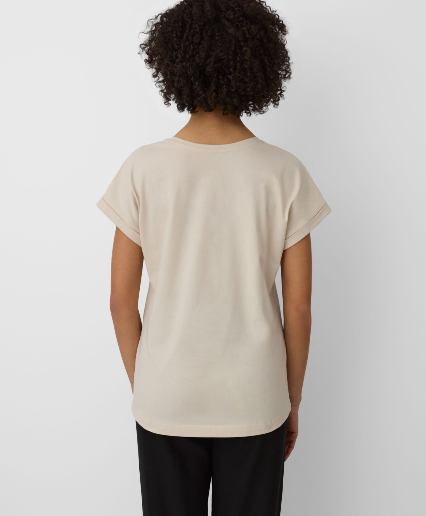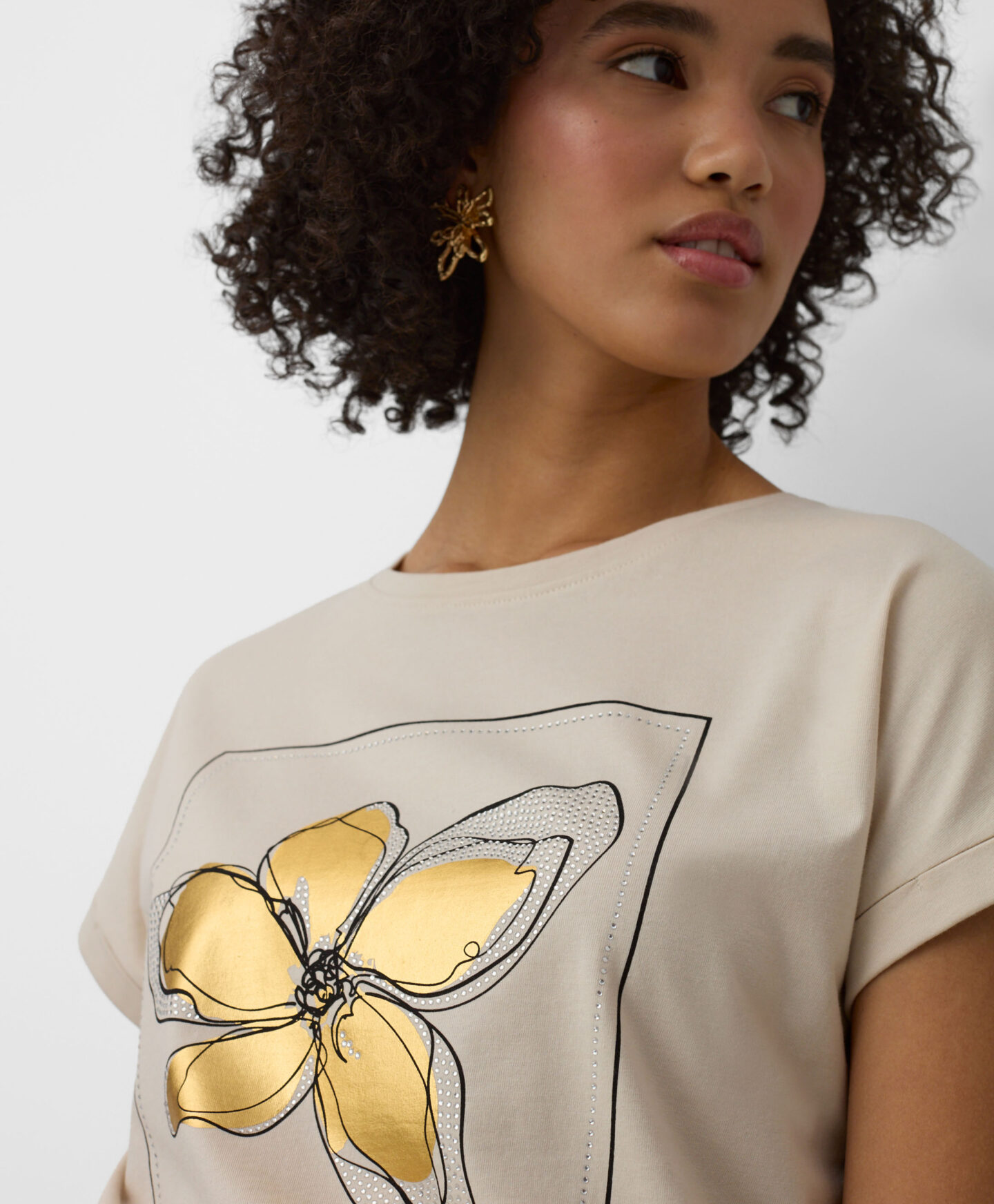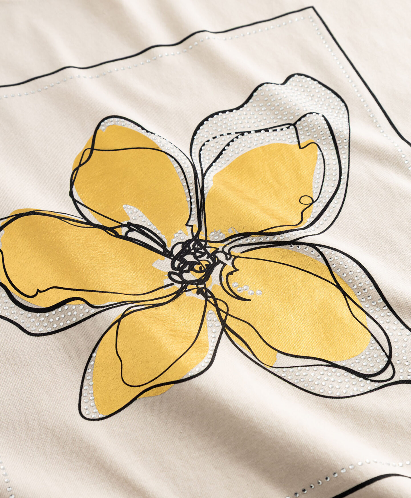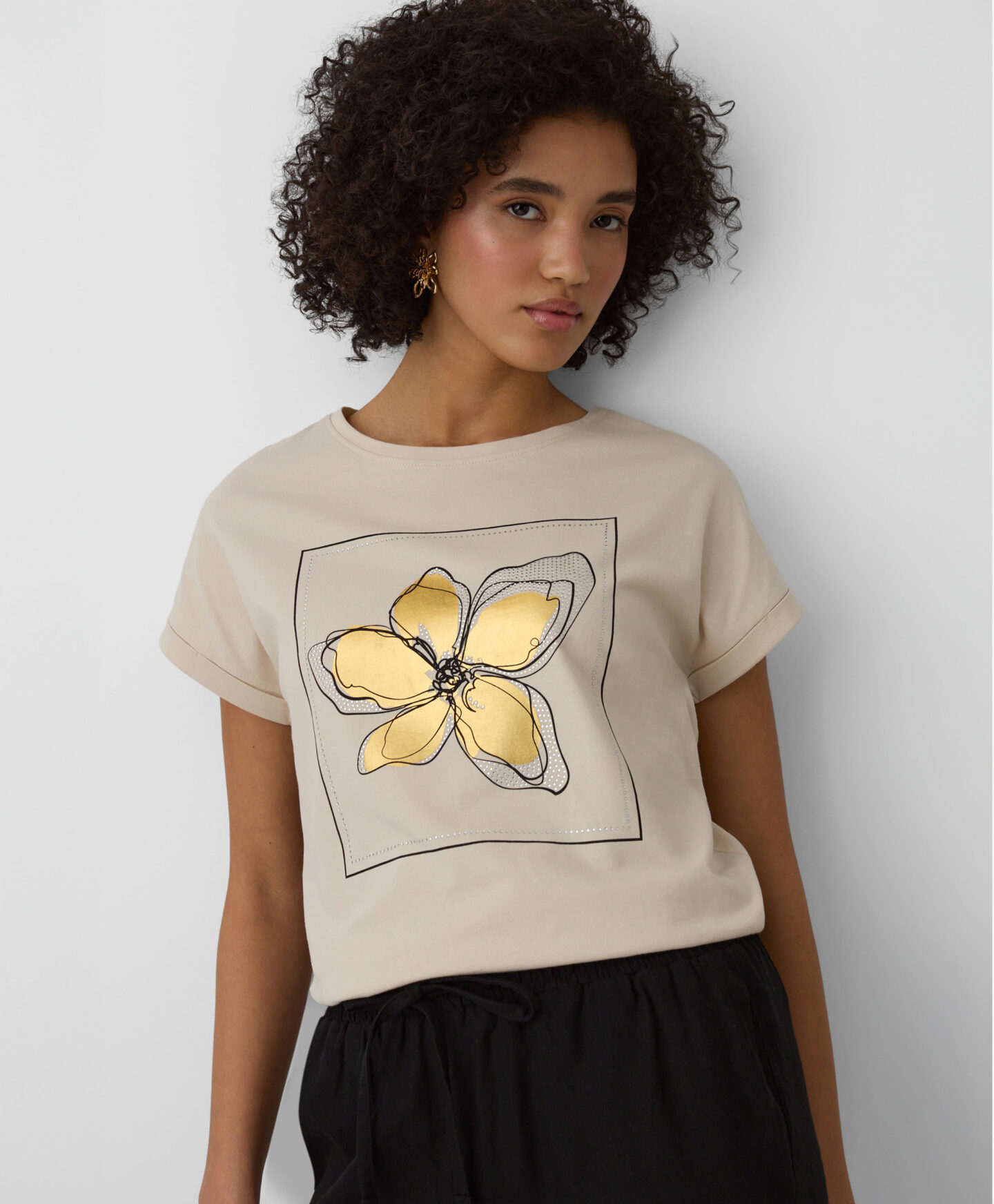 See 100% puuvillane T-särk on kaunistatud kauni kristall-aplikatsiooniga. Mugav ja hingav, ideaalne kandmiseks lemmikteksade, dressipükste või elegantsemate pükstega.