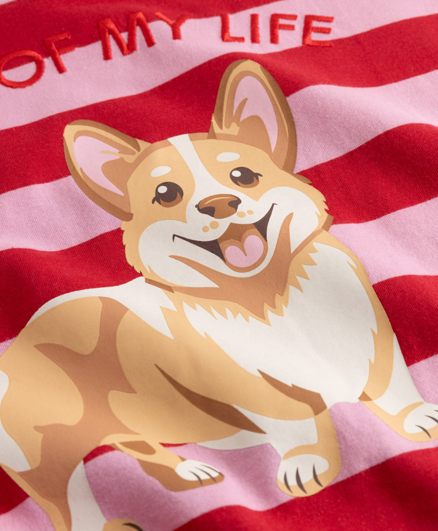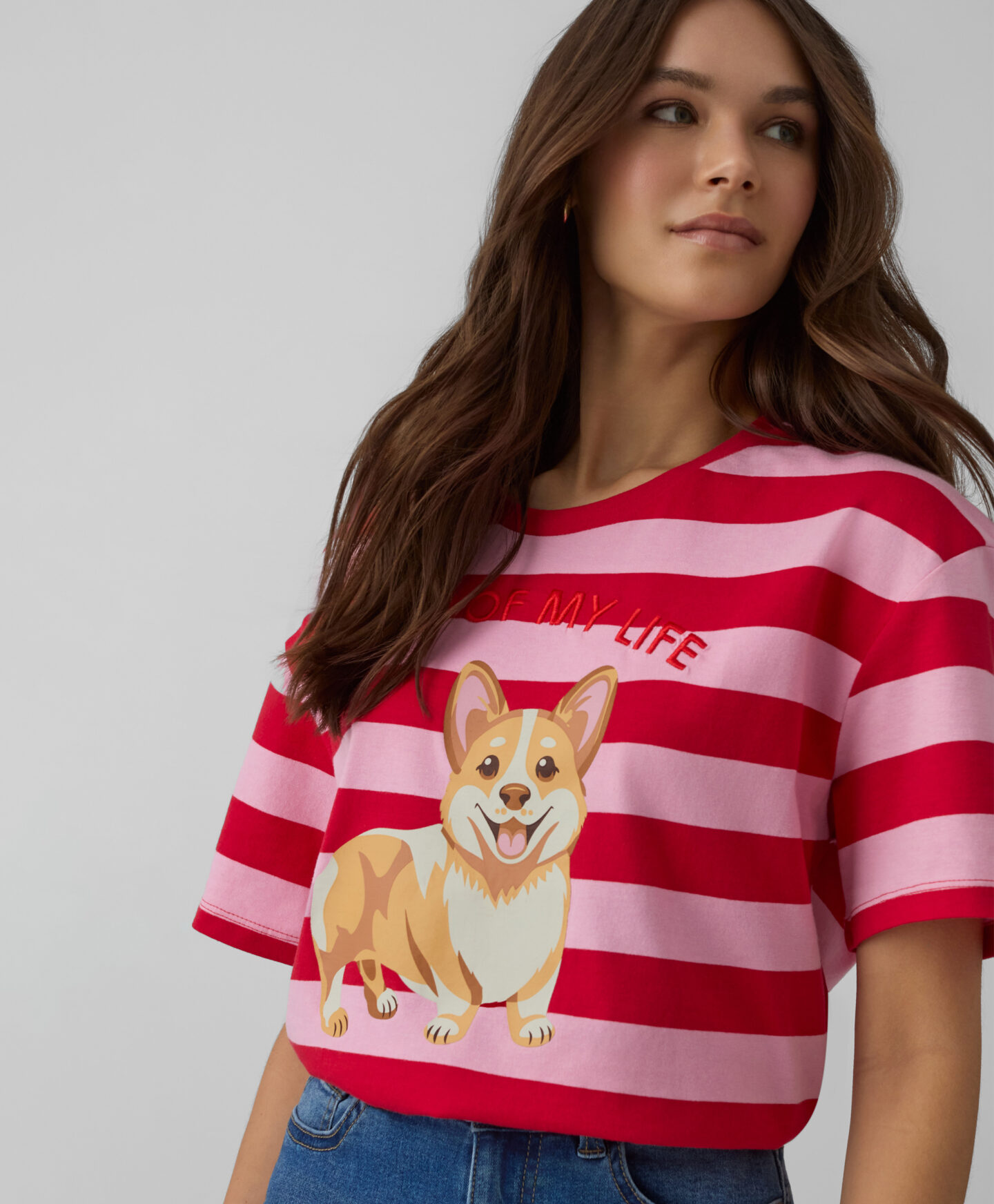 Koerapildi ja lõbusa kirjaga 100% puuvillane triibuline T-särk sobib hästi igapäevaseks kandmiseks. See on pehme ja hingav ning tundub naha vastas mõnus. T-särk sobib hästi kokku teksa- ja dressipükstega.