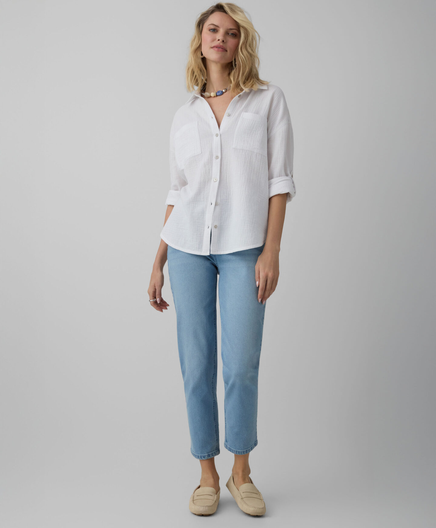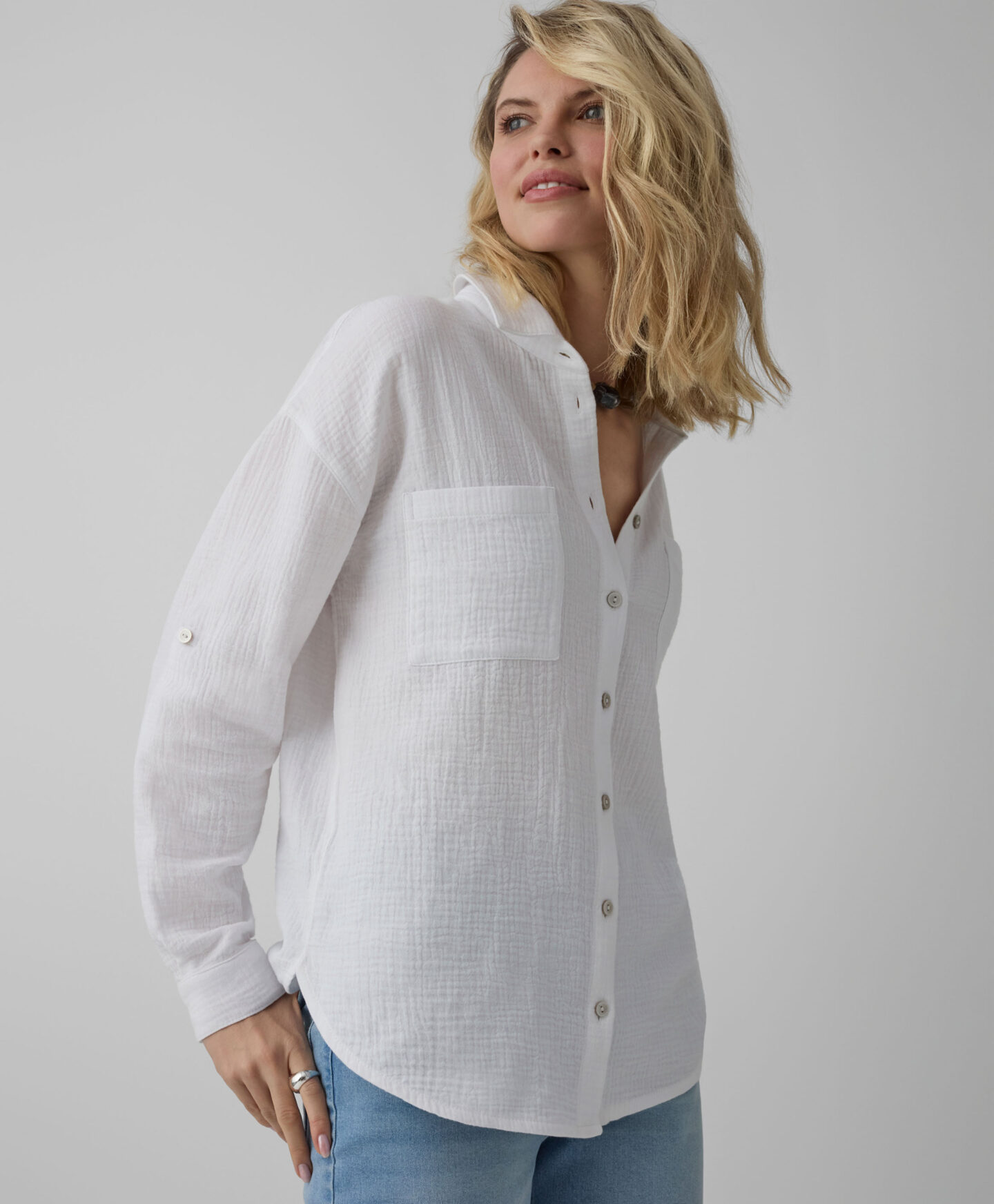 100% puuvillane valge särk on ideaalne valik neile, kes hindavad looduslikke materjale ja viimistletud stiili. Musliinkangas on erakordselt pehme ja kerge ning laseb nahal hingata. Ajatu valge toon sobitub hõlpsasti erinevate rõivastega, alates pükstest kuni seelikuteni, pakkudes rohkelt kombineerimisvõimalusi.