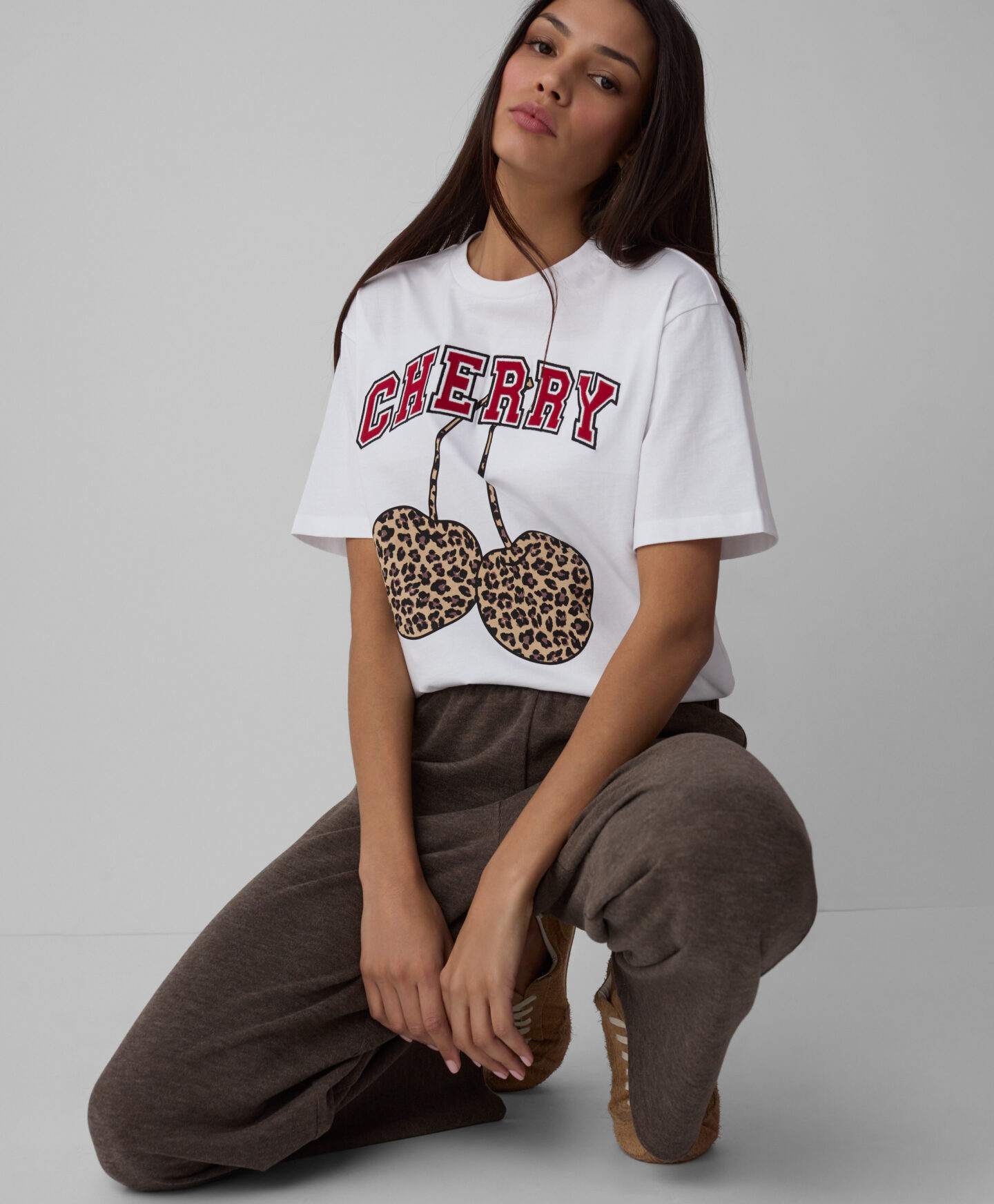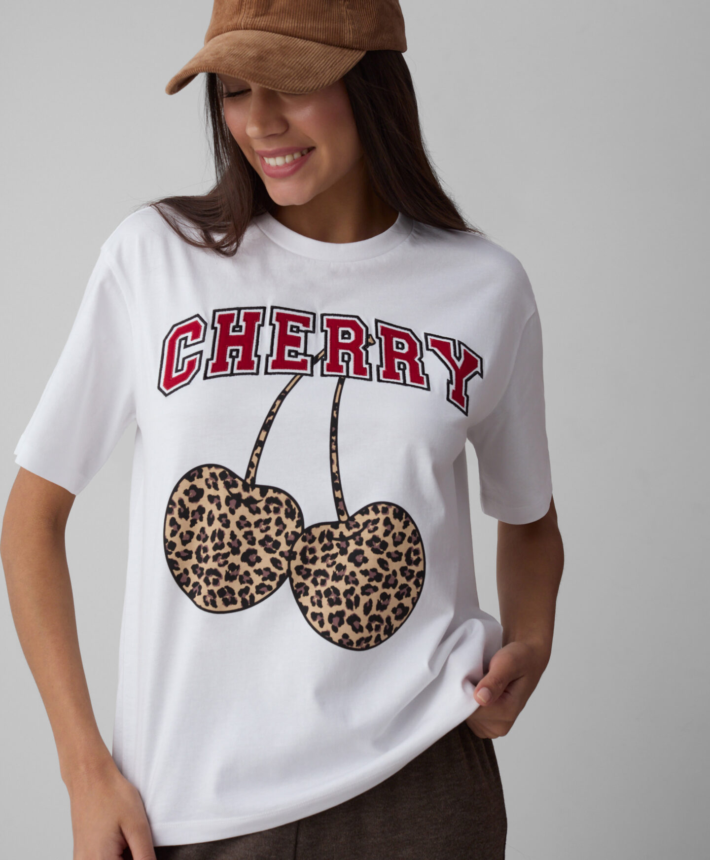 100% puuvillane valge T-särk leopardi mustriga lisab iseloomu igale riietusele. Naturaalne materjal on nahale õrn ja pakub täielikku mugavust kogu päevaks. Seda saab kombineerida sportlike pükstega või elegantsete aksessuaaridega peenema ilme saavutamiseks.