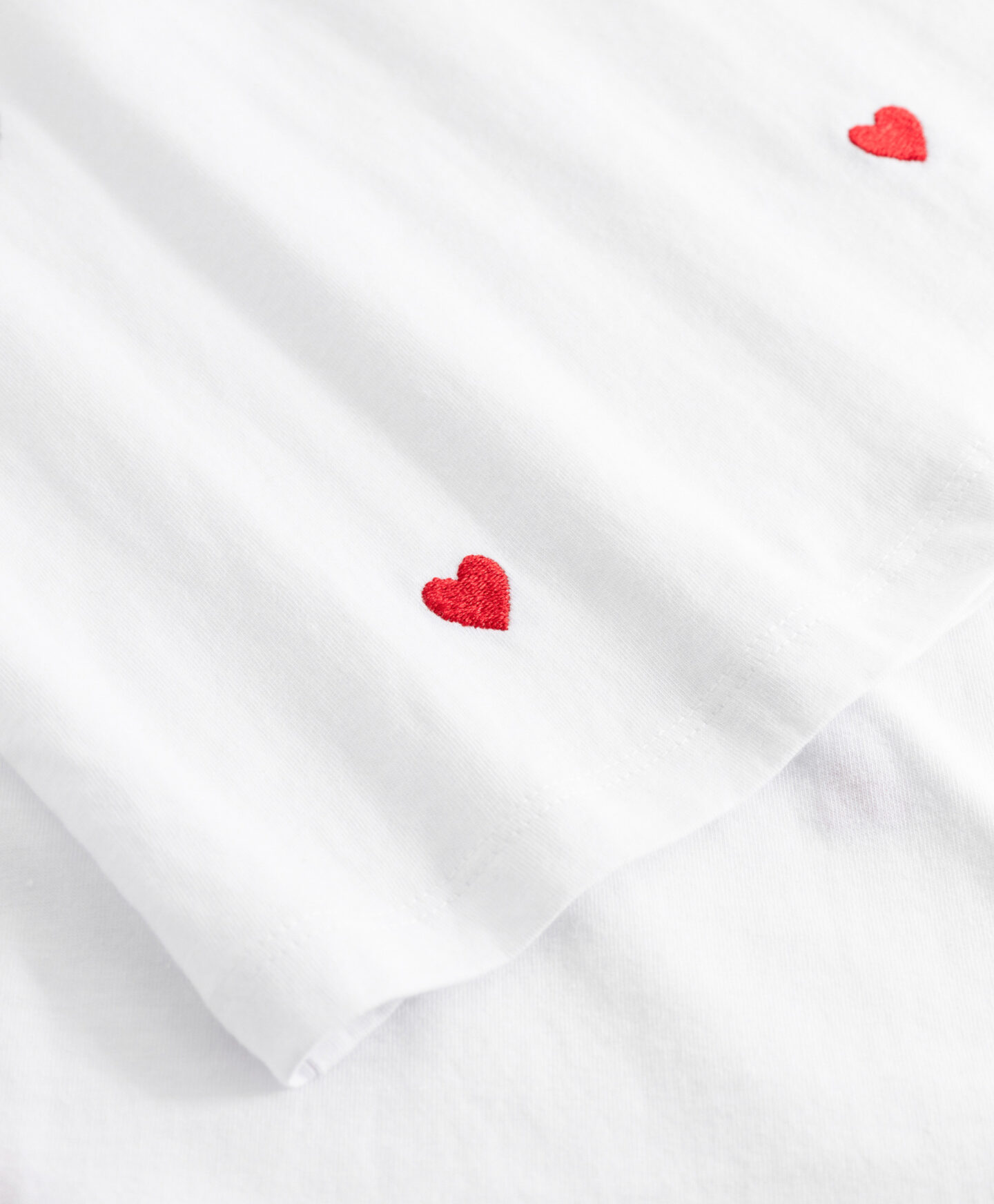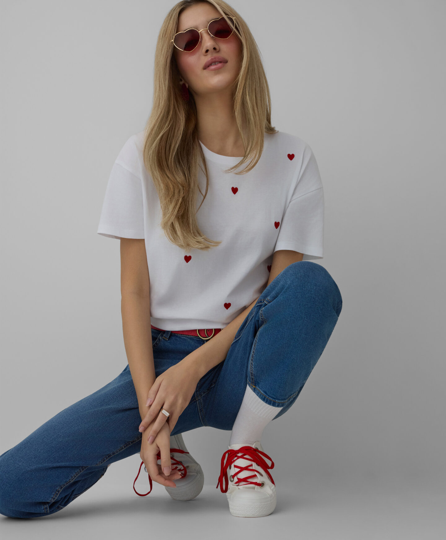 Südametega 100% puuvillane valge T-särk on ülimugav. Klassikaline lõige, pehme materjal ja armas muster teevad sellest hea valiku igaks päevaks. Saadaval 2 värvis.