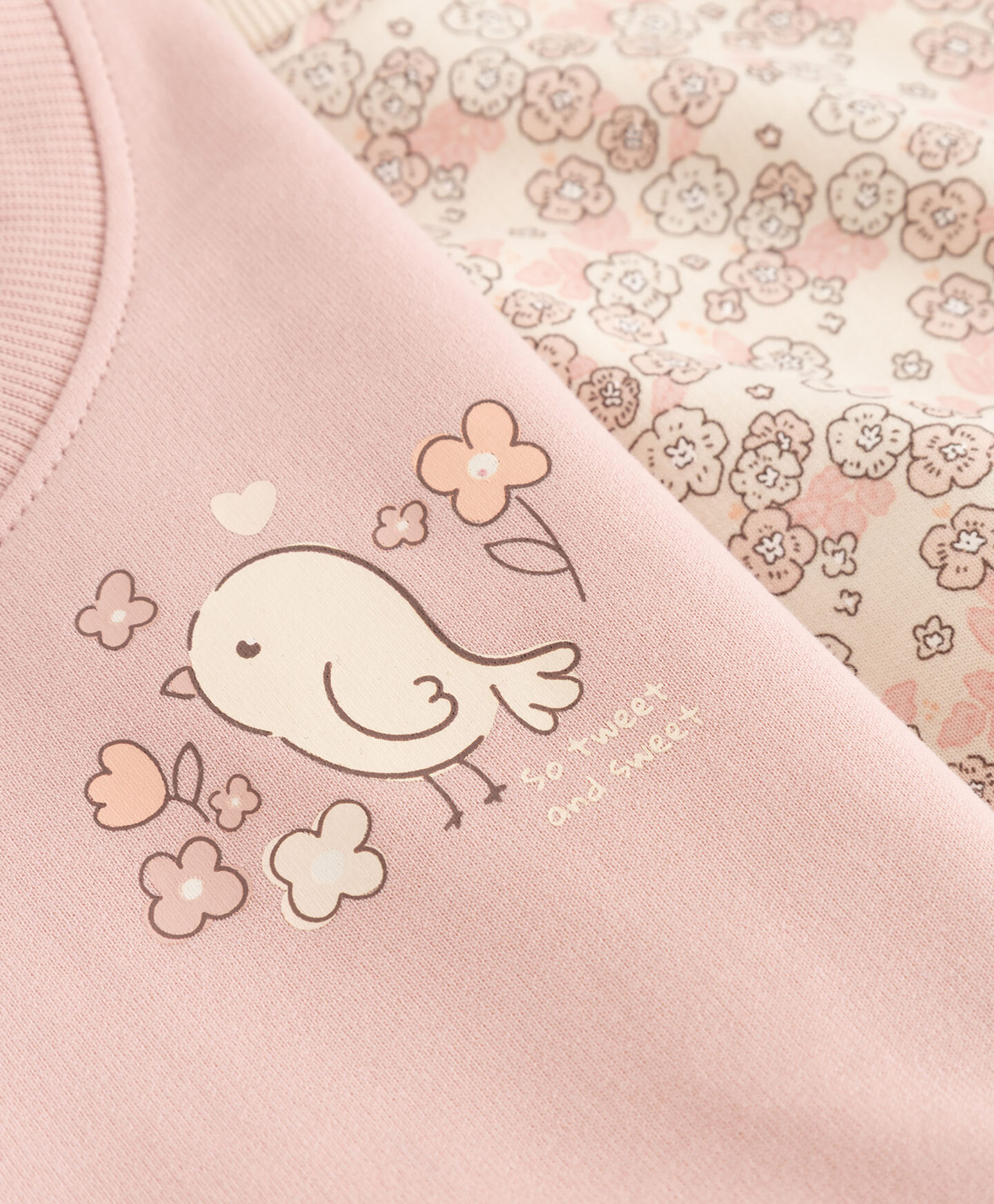 100% puuvillased pusad beebidele torkavad lapse muude riiete hulgast silma, pakis 2 tk. Kummalgi pusal on erinev kevadine välimus. Pusad on pehmed ja soojad ning sobivad kandmiseks muude riiete all ja peal. Looduslik puuvillane kangas on naha vastu õrn ja laseb sellel hingata, et beebi tunneks end iga päev hästi. Saadaval on ka samast komplektist dressipüksid.