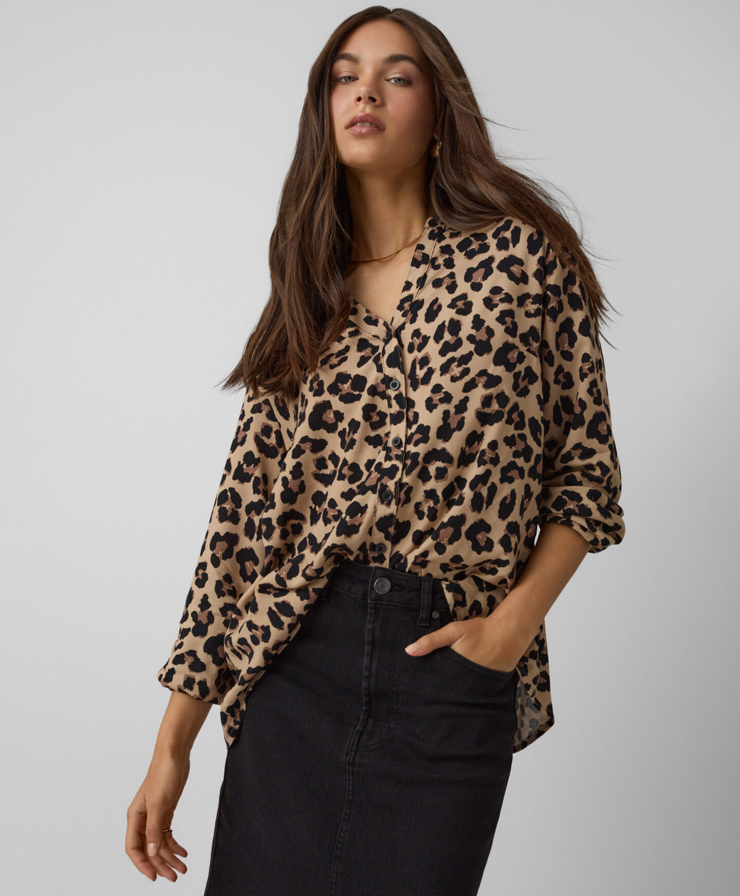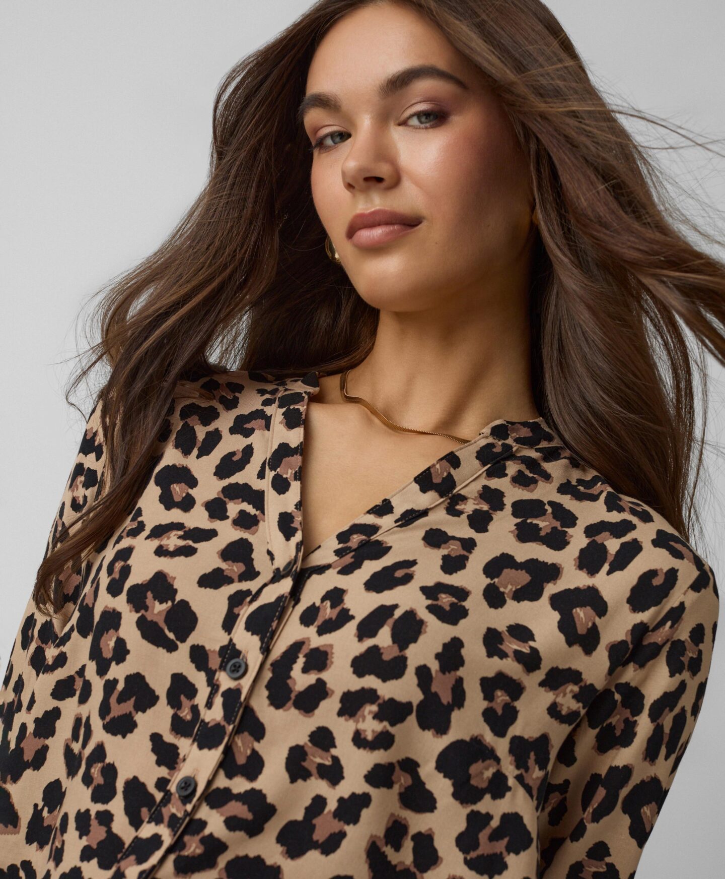 Silmatorkava mustriga 100% viskoosist pluus on moekas valik riidekapi täiendamiseks. See on kerge, õhuline ja laseb nahal hingata. Pluus sobib eriti hästi jaki või soojema kampsuni alla. Leopardimuster torkab teiste riiete hulgast silma.