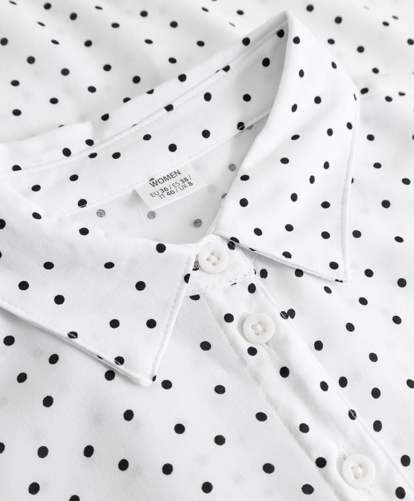 Täpiline 100% viskoosist särk üllatab sind oma mitmekülgsusega! Täpiline muster ei lähe kunagi moest ja sobib hästi erinevate garderoobiesemetega, nii pükste kui ka seelikutega. Kerge ja hingav materjal tagab kandmisel mugavuse. Särk sobib nii kontorisse, kohtingule kui ka pidulikumale üritusele.