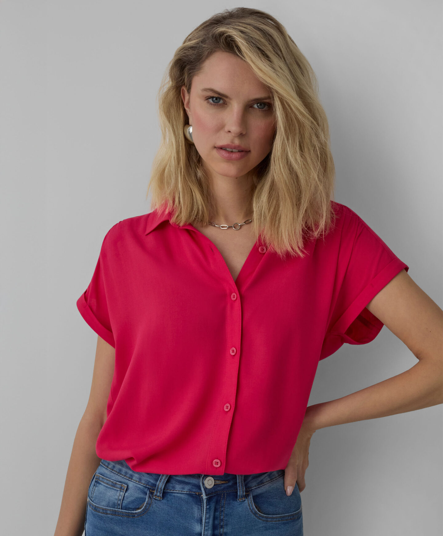 100% viskoosist särk köidab pilku värviga, mis lisab igale komplektile värskust ja energiat. Mugav lõige, nööbid ja lühikesed varrukad muudavad selle praktiliseks ning mitmekülgseks valikuks. Kerge ja voolav kangas sobib ideaalselt kihilisteks kombinatsioonideks. See on ese, mis väärib kindlat kohta igas garderoobis.