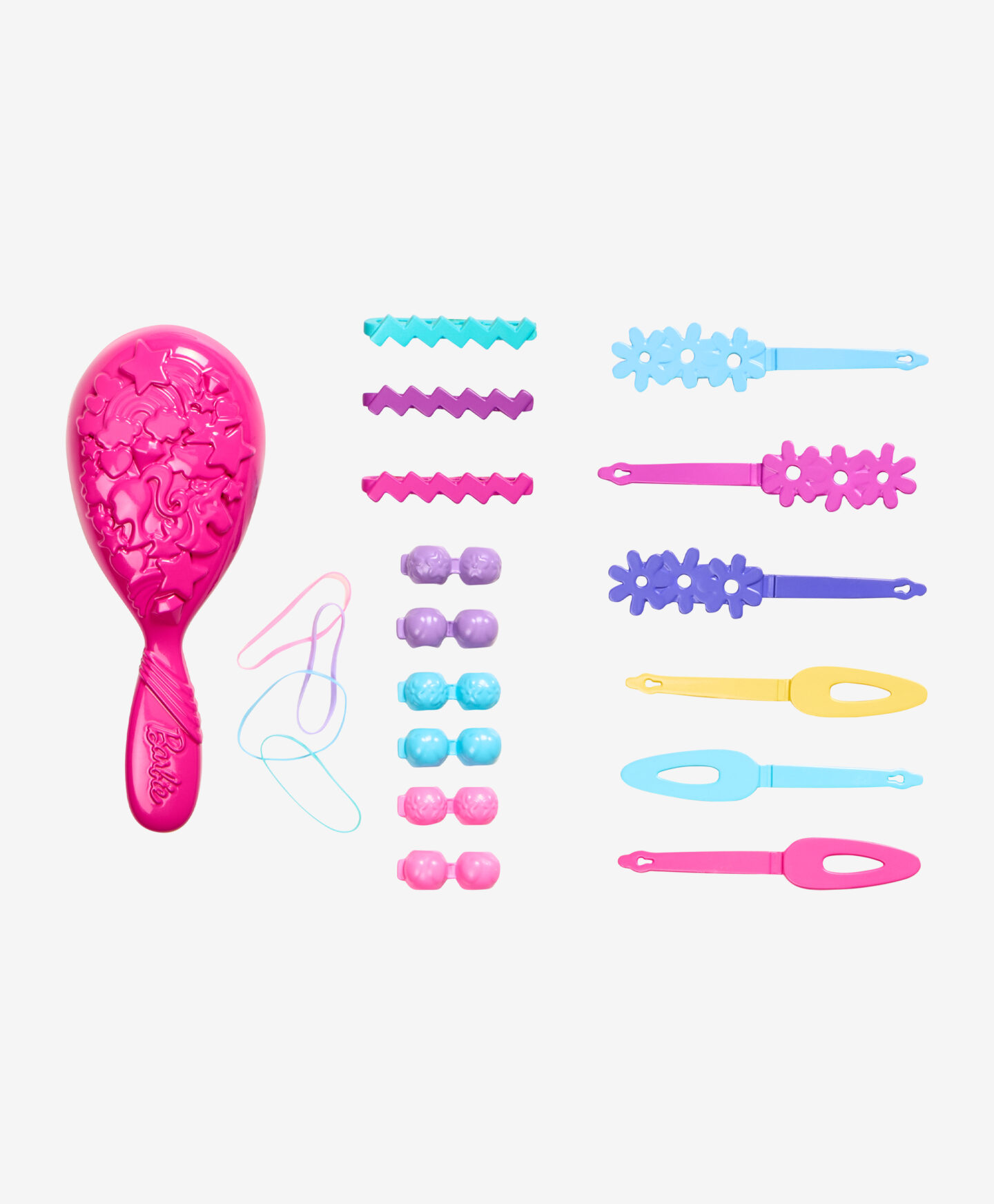 BARBIE soengupea on hea komplekt väikestele soenguhuvilistele. Nuku pikki heledaid juukseid saab kammida, patsi punuda ja ehtida komplektis olevate aksessuaaridega. Komplekti kuuluvad värvilised juukselõksud ja -ehted erinevate soengute tegemiseks. Nukk aitab lastel arendada käelisi oskusi ja tunda rõõmu loomingulisest mängust.