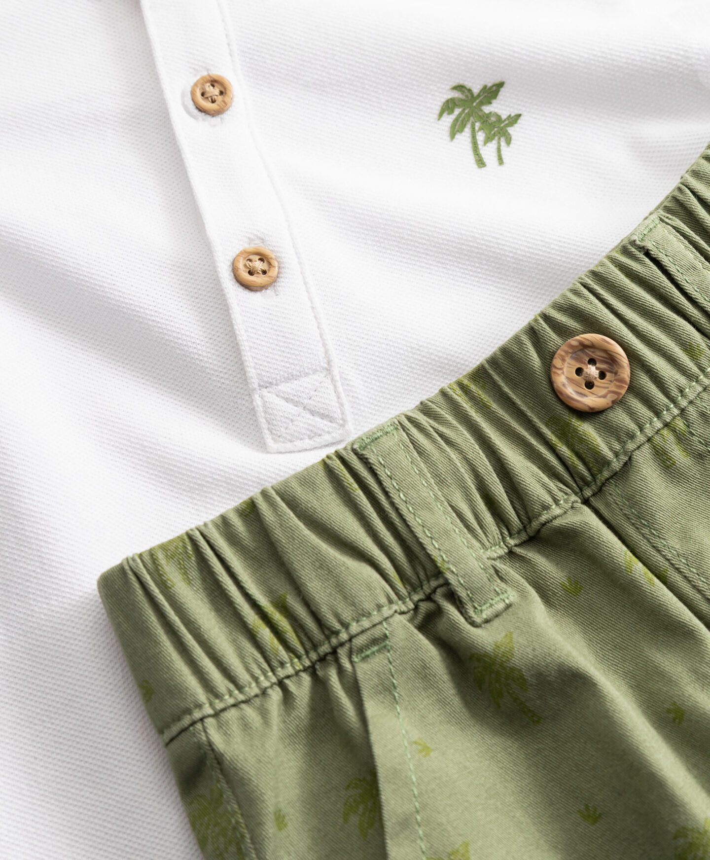 Beebikomplekt on ideaalne väikesele avastajale soojadel päikesepaisteliseks päevadeks. T-särk lihtsa kaeluse kinnitusega tagab kiire riietamise. Rohelistel lühikestel pükstel on elastne vööpael, mis sobib ilma surumata pehmelt kõhule.