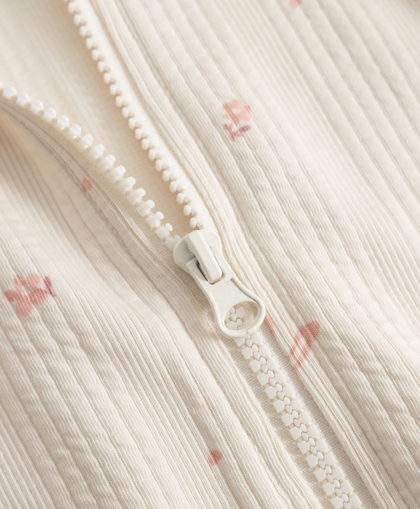 Beebipusa volangidega kinnitub mugava lukuga, muutes riietamise lihtsaks. Elastsed äärised tagavad soojuse ja mugavuse. Võluv jänkumuster lisab rõõmu igale koosveedetud hetkele ja näeb fotodel kaunis välja. Pehme, kõrge puuvillasisaldusega materjal hellitab beebi tundlikku nahka ja sobib ideaalselt esimesteks riieteks.