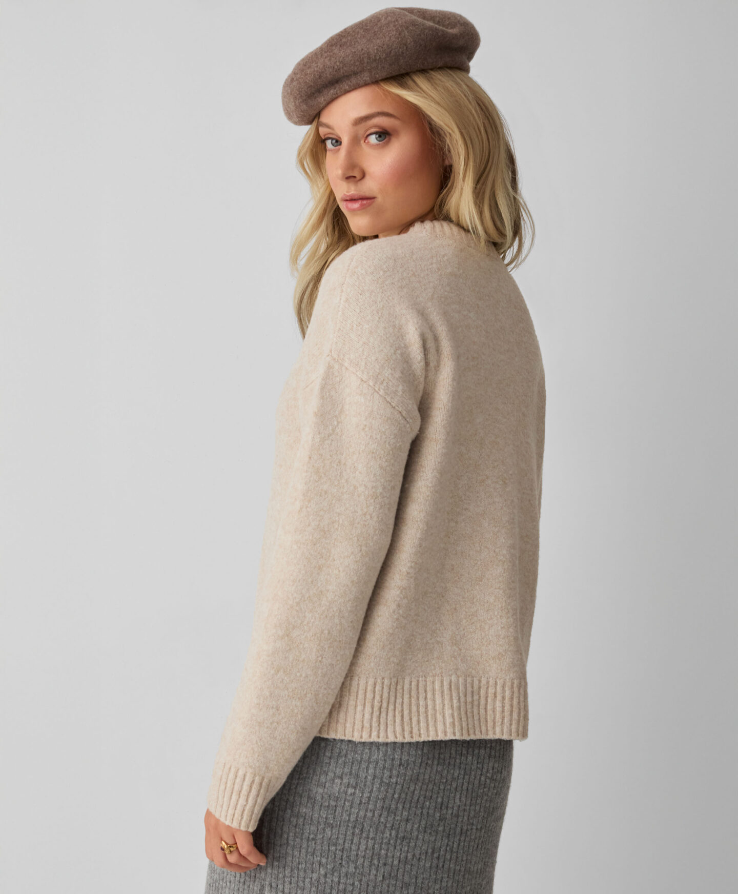 Ühevärviline beež kampsun kõrge kraega aitab võidelda sügis- ja talvejahedusega. See on paks, soe ja moekas. Sobib nii tööpäevadeks, vaba aja veetmiseks kui ka igapäevasteks toimetusteks. Hästi sobiv valik nii teksade kui ka elegantsete või sportliku stiiliga pükste juurde. Saadaval kahes värvitoonis.