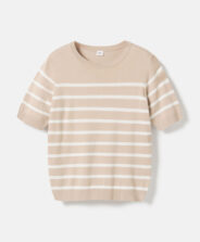 Beež viskoosist kampsun on sel hooajal kohustuslik riideese. Klassikaline triibuline muster ja värvid muudavad selle ideaalseks täienduseks nii vabaaja kui ka elegantsema riietusega.