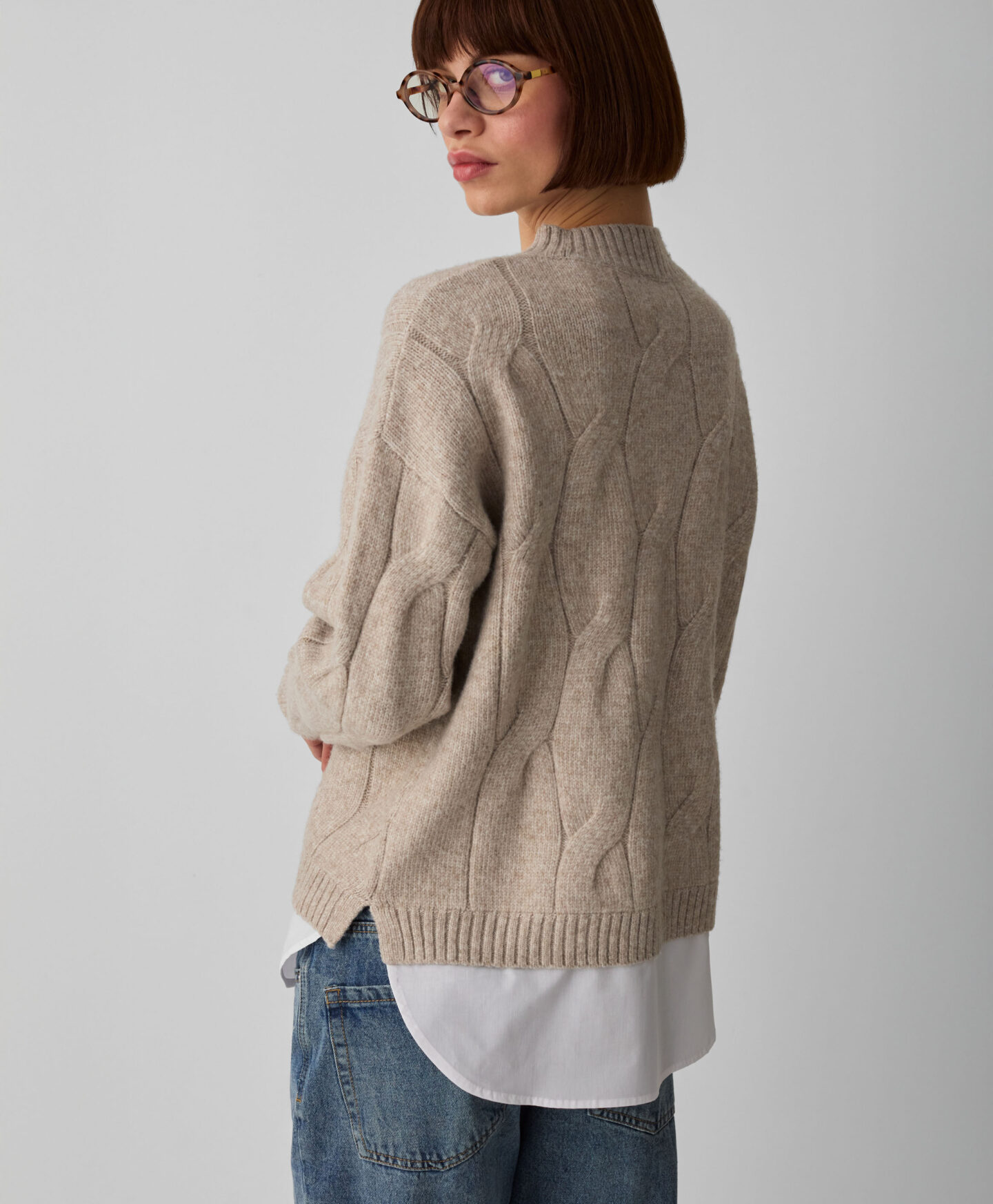 Beež kampsun särgiga on loodud trenditeadlikele. Palmikkude toob esile sügisese meeleolu, ning kombinatsioon valge särgiga teeb sellest suurepärase valiku mitmeks eri olukorraks. Sobib nii kontorisse, sõpradega kohtumiseks kui ka sügisesele kohtingule. Saadaval kahes värvitoonis.