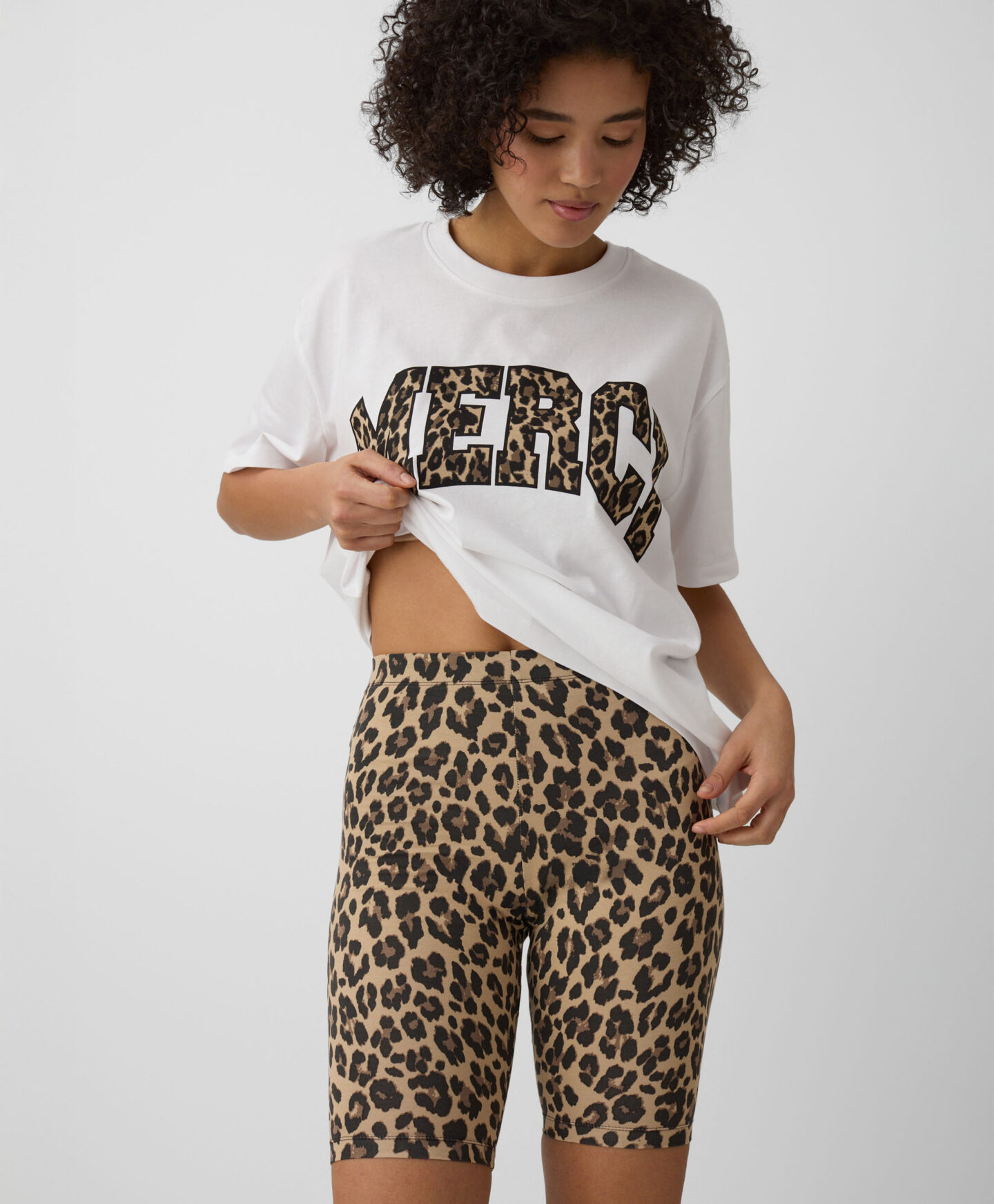 Bikery damskie w panterkę z wysoką zawartością bawełny to coś dla kobiet, które lubią eksperymentować ze stylem i wyrażać swoją osobowość poprzez modę. Domieszka elastanu sprawia, że dobrze się układają. Dopasowany krój modeluje sylwetkę, a wysoka talia optycznie wydłuża nogi, zapewniając jednocześnie maksymalny komfort i swobodę ruchu. Połączysz je z koszulką oversize lub bluzą, uzyskując modną sportową stylizację.