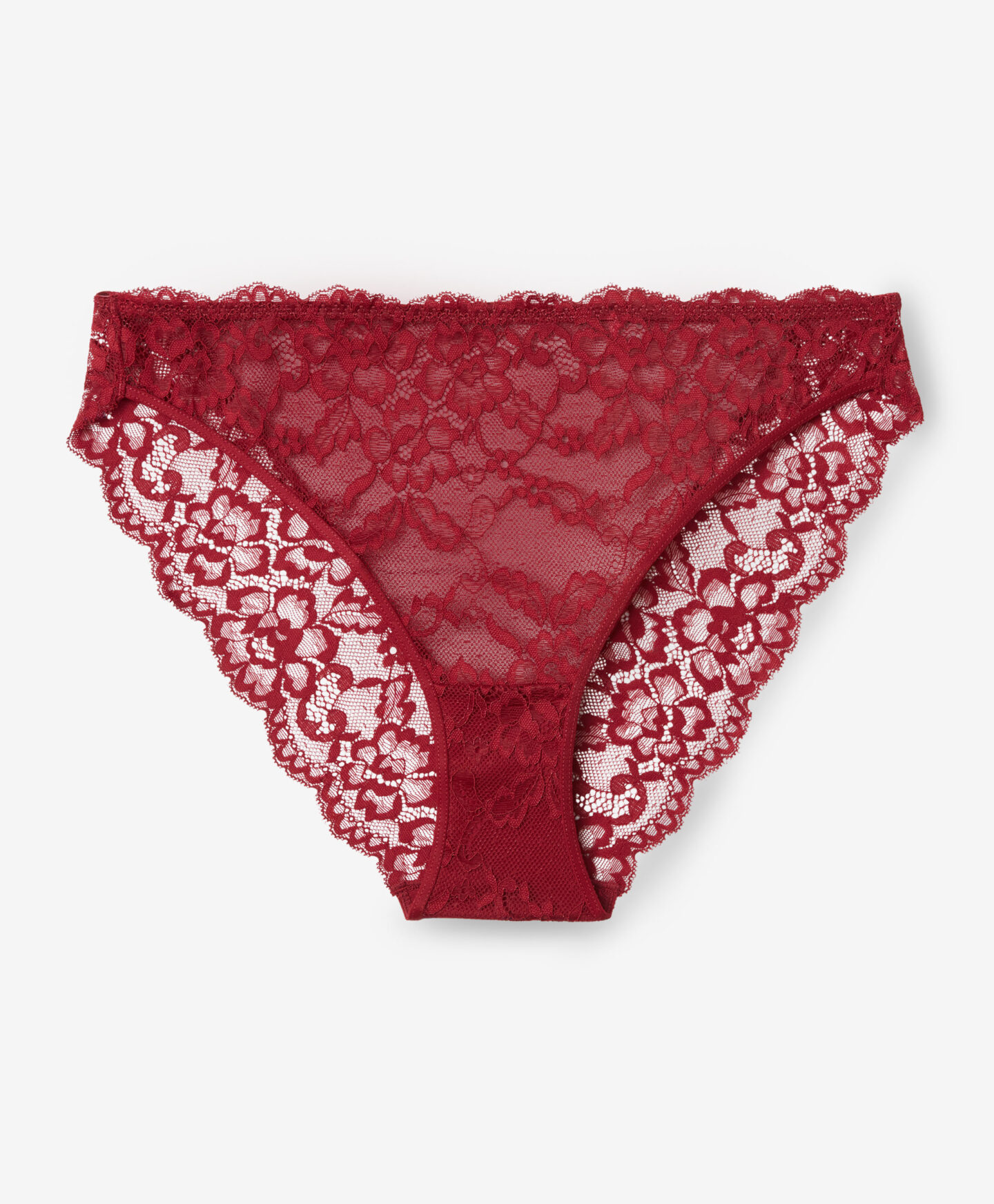 Burgundi toonis roosimustriga pitsilised bikiinipüksikud on sensuaalne valik, mis annab enesekindlust ja elegantse välimuse. Elastaani lisamine tagab mugava ja hästi istuva vormi, rõhutades loomulikke kehajooni. Õrn pits on suurepärane valik hetkeks, mil soovid end enesekindlalt tunda. Kollektsioonis on saadaval ka sobiv rinnahoidja.
