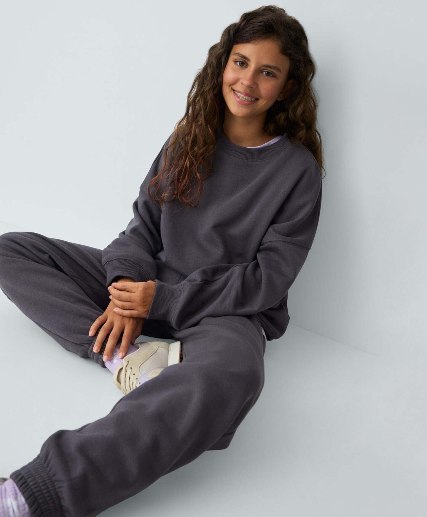 Trendika ülesuuruses lõikega puuvillasisaldusega dressipüksid on sügiseks kui loodud. Need on pehmed ja mugavad ning tagavad täieliku liikumisvabaduse. See on hea valik kooli, trenni või nädalavahetusel õues käimiseks. Saadaval on ka samast komplektist sama värvi pusa.