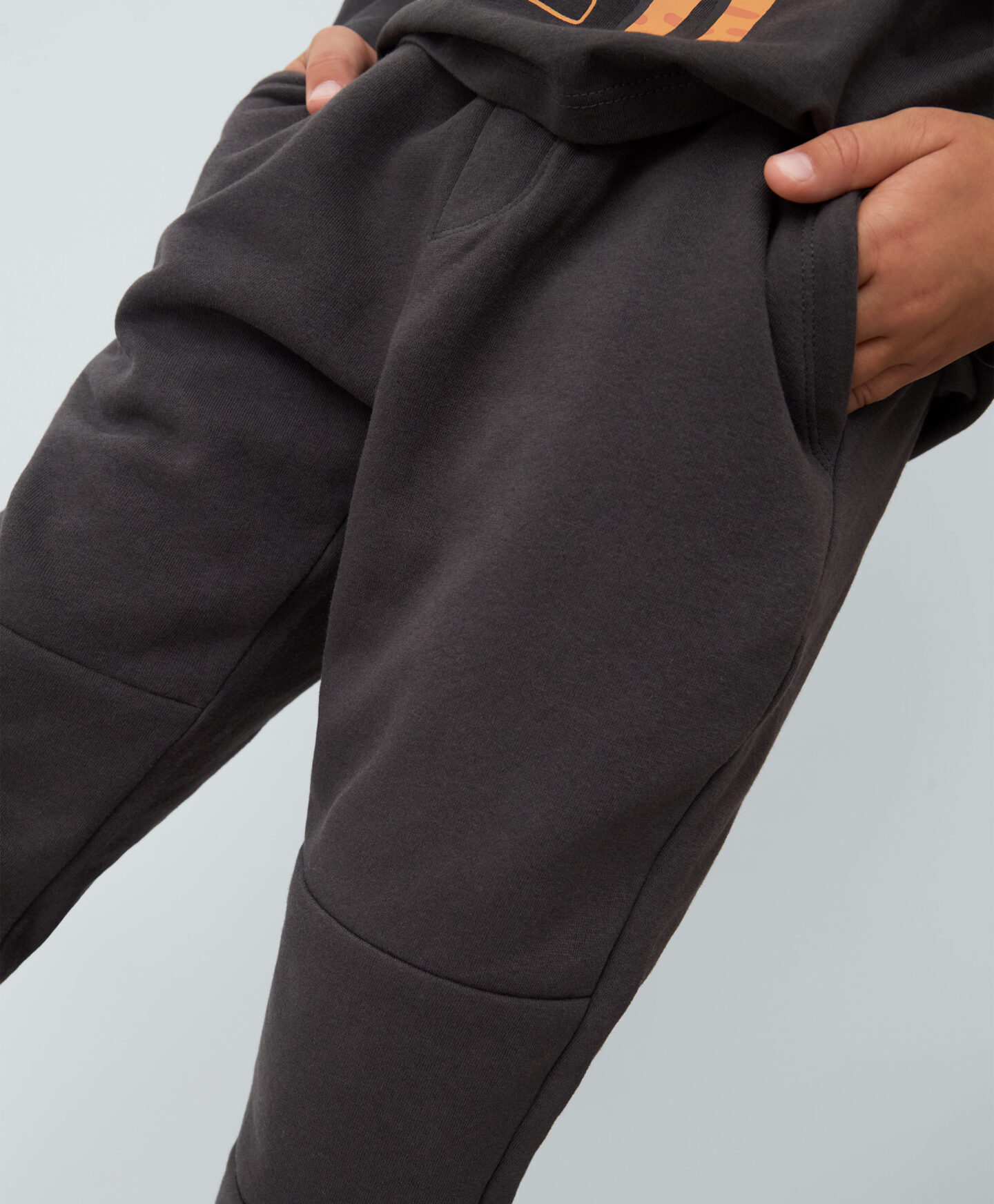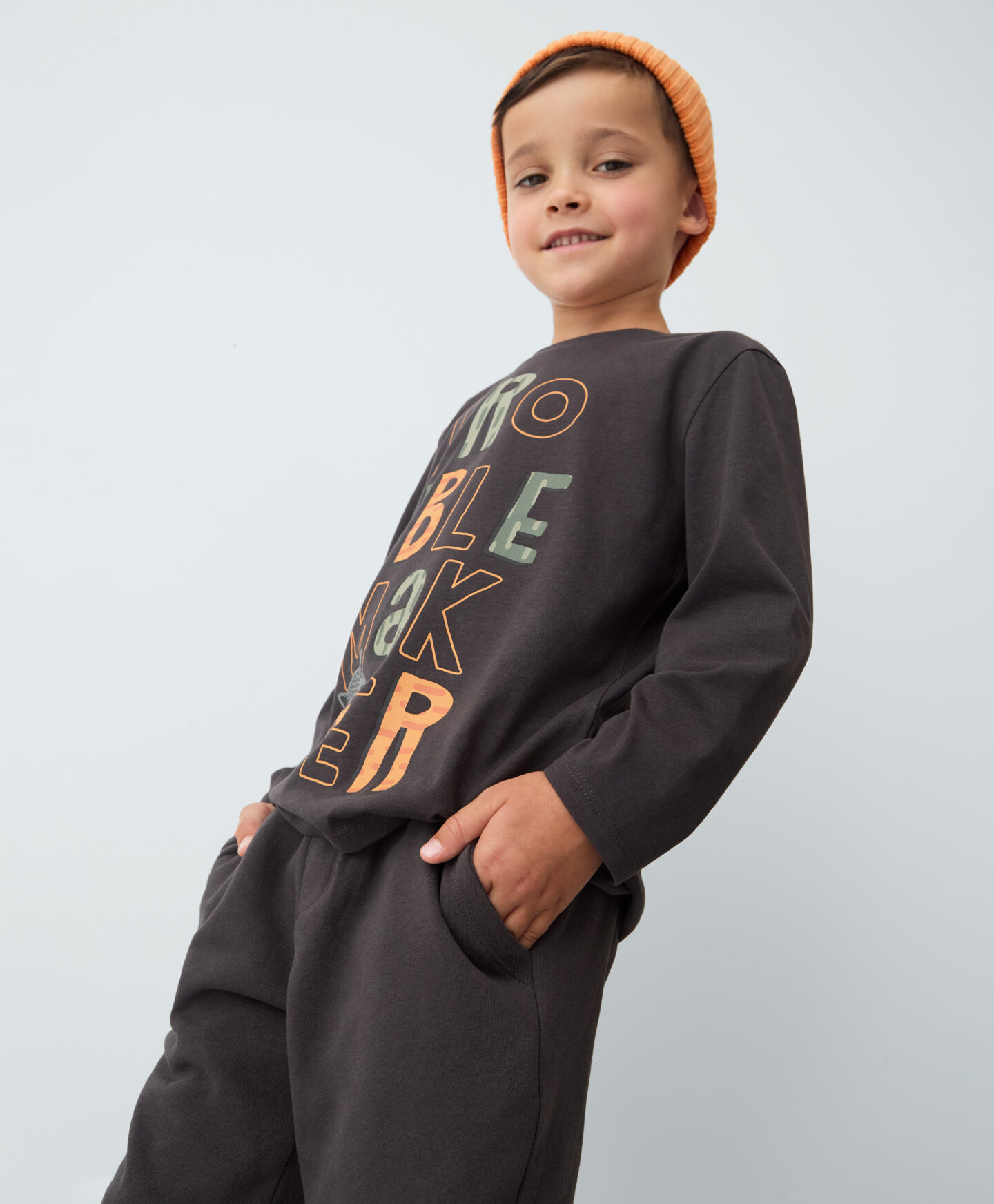 Suure puuvillasisaldusega dressipüksid on sügisilmadeks kui loodud. Venivate mansettidega pükstes on lapsel mõnusalt soe ja mugav. Nahasõbralik kangas tundub keha vastas mõnus ja laseb vabalt liigutada. Saadaval on ka samast komplektist pikkade varrukatega T-särk.
