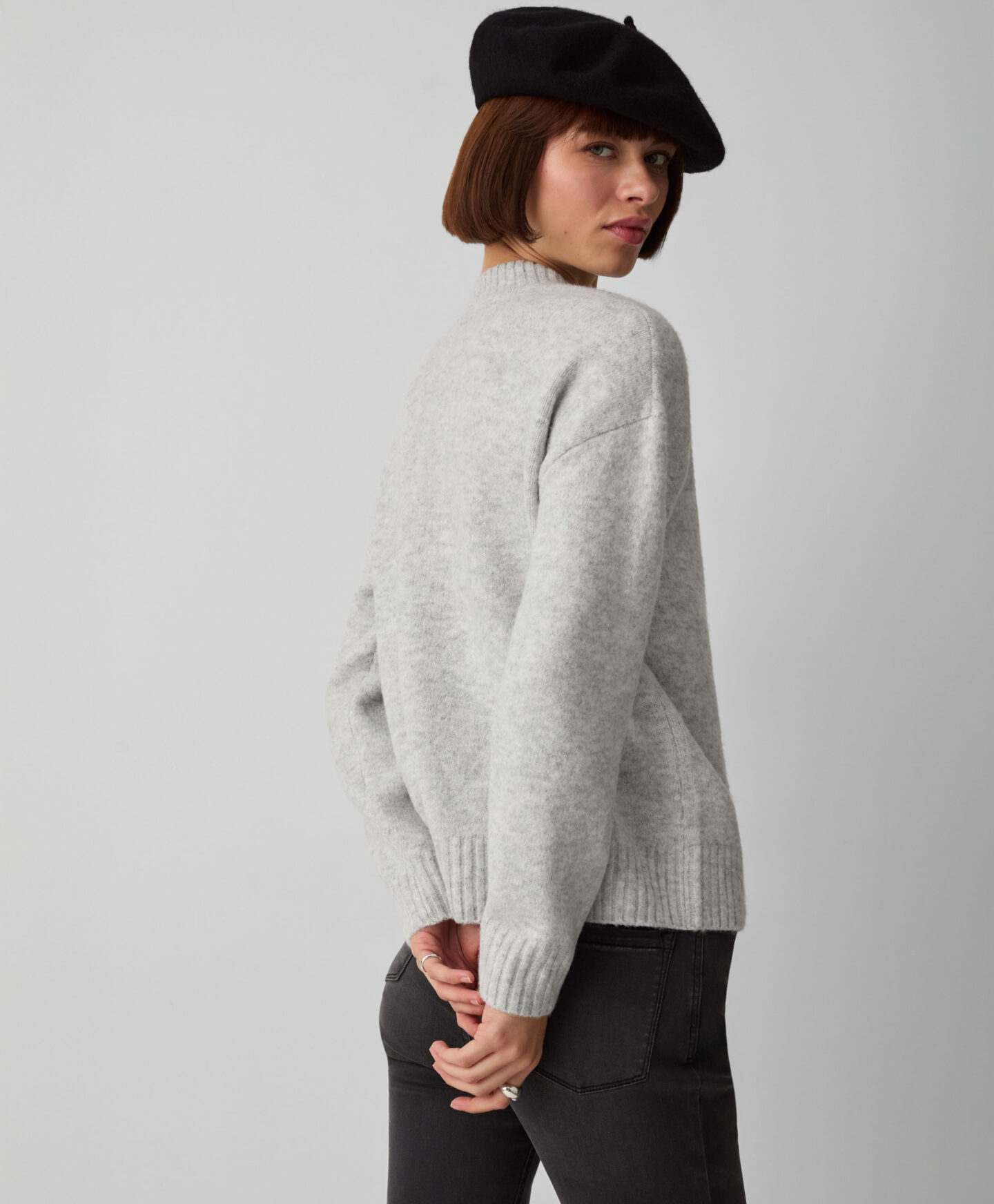 Ühevärviline hall kampsun kõrge kraega aitab võidelda sügis- ja talvejahedusega. See on paks, soe ja samas stiilne. Sobib hästi kontorisse, sõpradega kohtumisteks või igapäevasteks linnatoimetusteks. Näeb suurepärane välja nii teksade, elegantsete kui ka sportlikuma lõikega pükstega. Saadaval kahes värvitoonis.