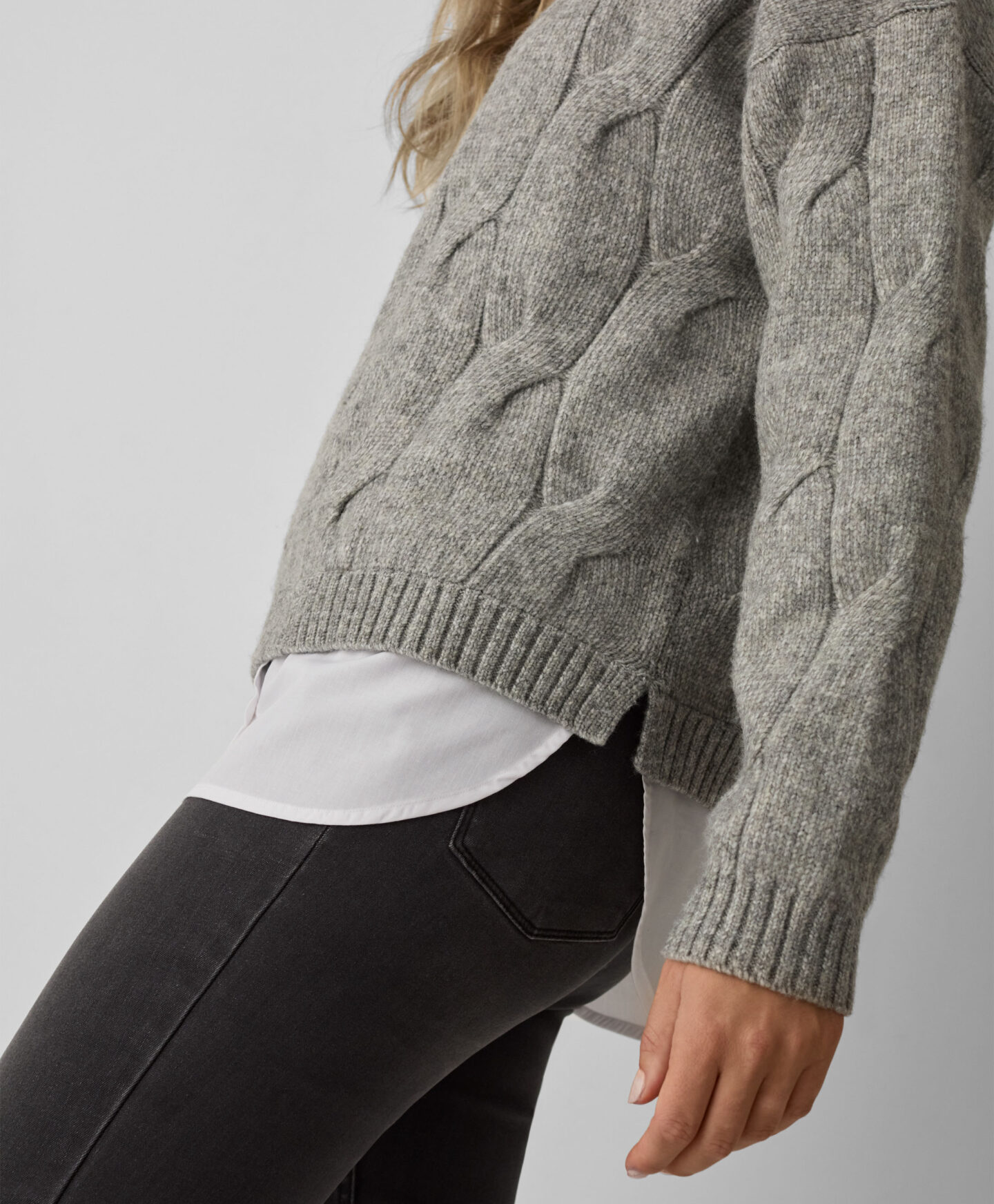 Hall kampsun särgiga on loodud trenditeadlikele. Palmikkude toob esile sügisese meeleolu, ning kombinatsioon valge särgiga teeb sellest suurepärase valiku mitmeks eri olukorraks. Sobib nii kontorisse, sõpradega kohtumiseks kui ka sügisesele kohtingule. Saadaval kahes värvitoonis.