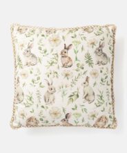Jänesemustriga padi lisab teie interjööri hubasust ja lihavõttehõngu. See näeb ilus välja diivanil, tugitoolil või voodil. Pehme ja kergesti puhastatav – sobib ideaalselt raamatuga lõõgastumiseks või pärastlõunauinaku nautimiseks.