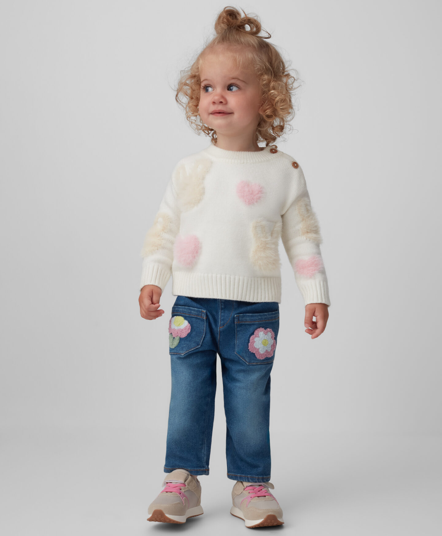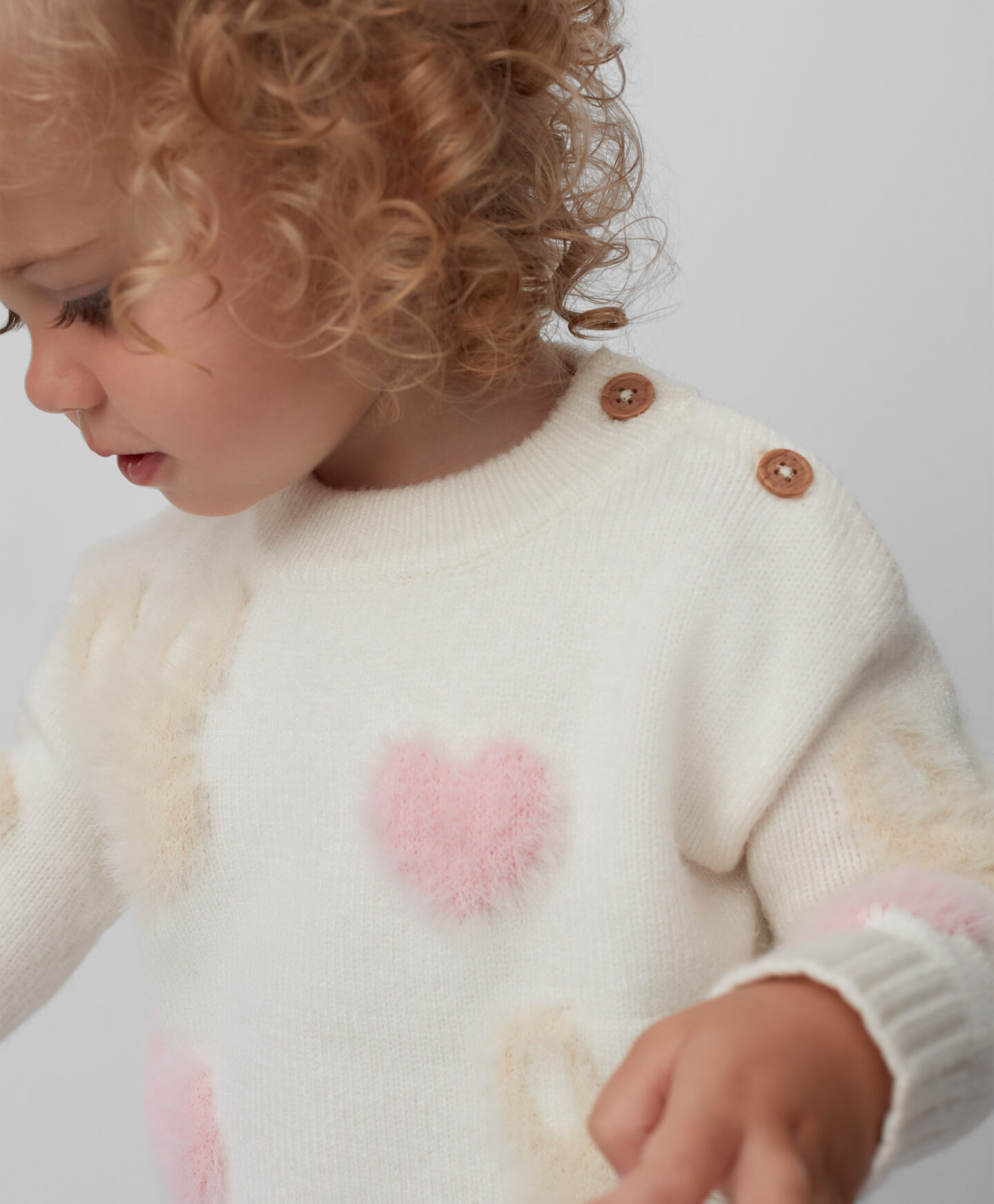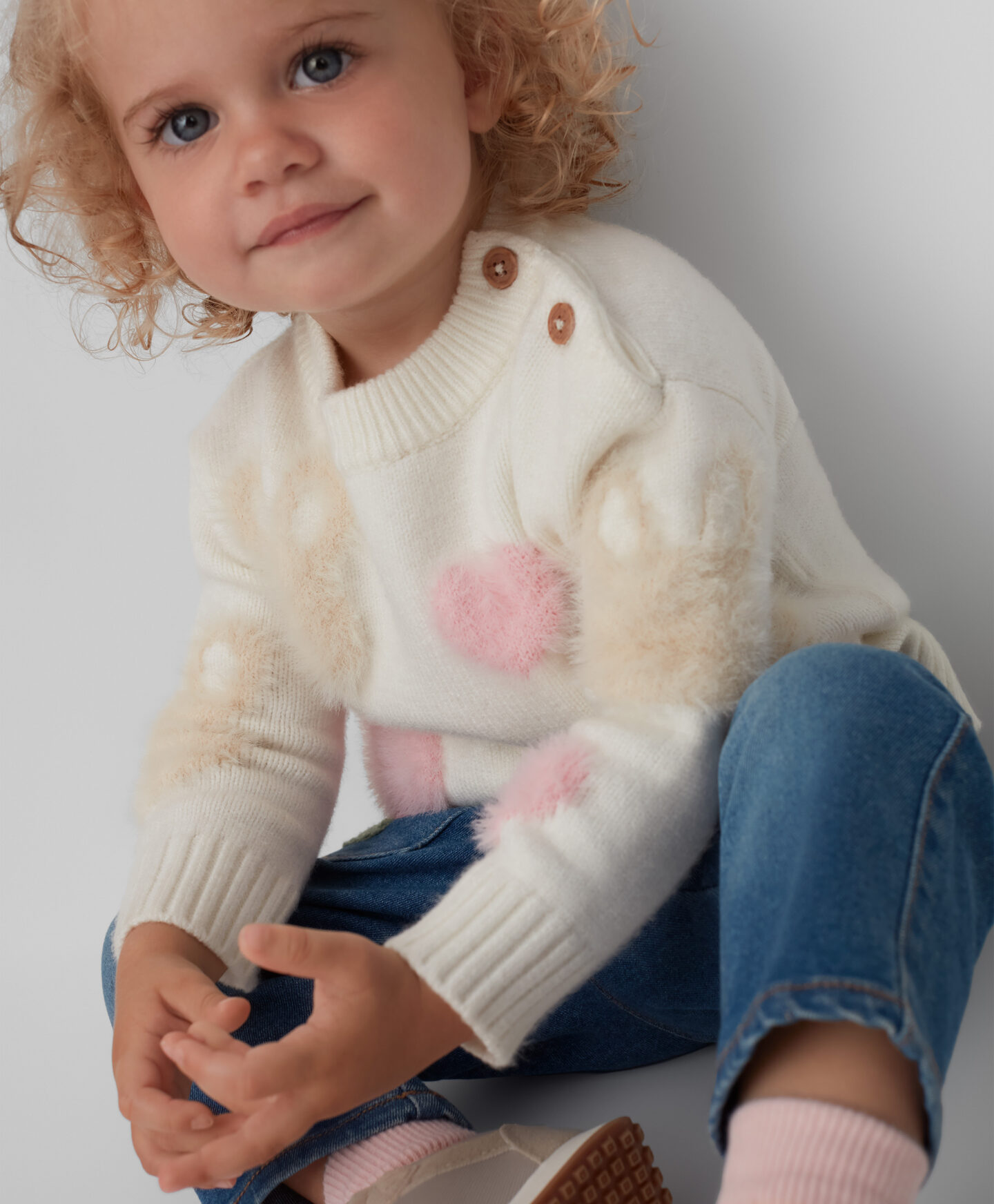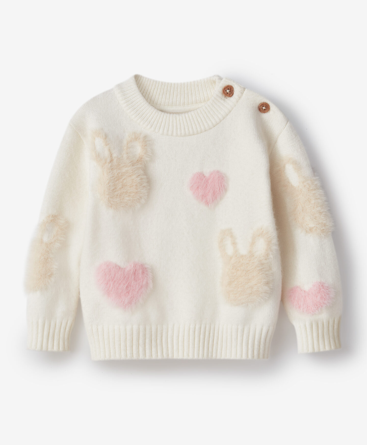 Nööpkinnitusega beebikampsun on mugav valik igapäevaseks kandmiseks. Nööpkinnitus teeb lapse riietamise lihtsaks, ning jänkude ja südametega disain lisab igale riietusele võlu. Kampsun on soe, pehme ja nahale õrn.