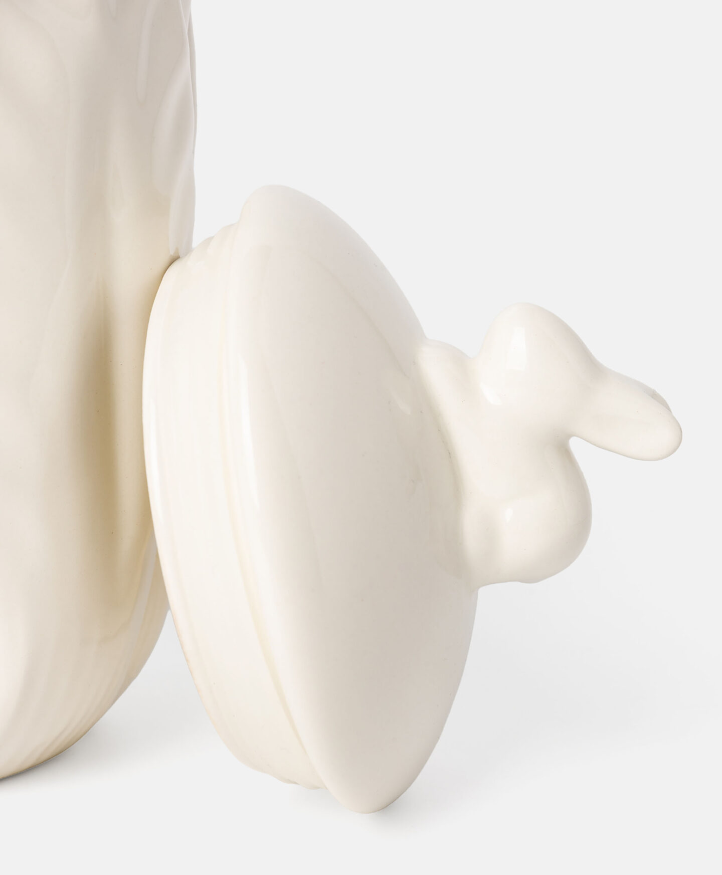 Kapsakujuline anum 3D-jänesega, valmistatud vastupidavast dolomiidist, mis sobib hästi igapäevaseks kasutamiseks. Näeb köögitasapinnal suurepärane välja ja seda on lihtne puhtana hoida. Selle neutraalne värv sobitub ideaalselt sinu lauanõudega.
