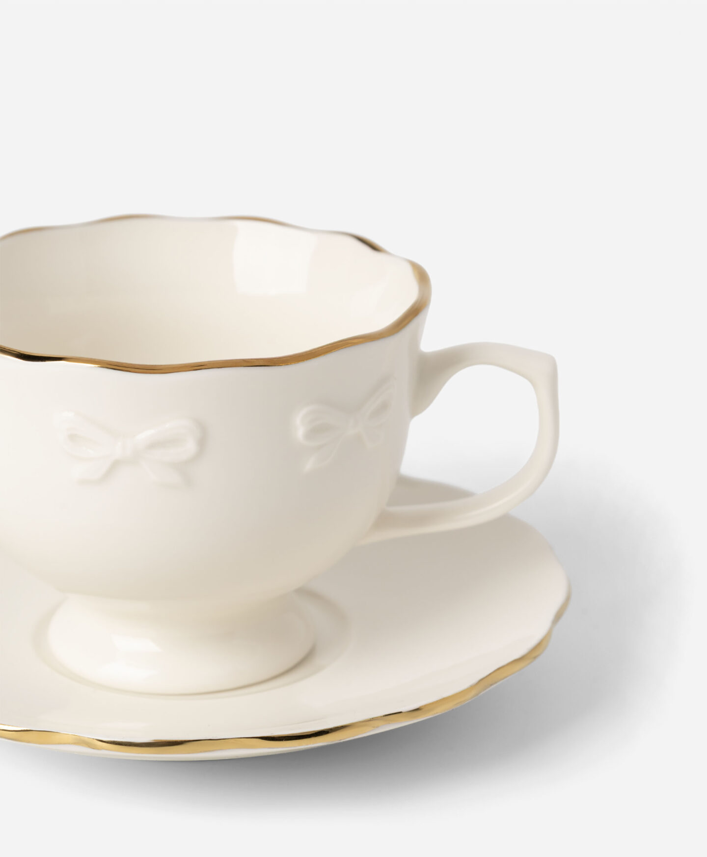 Keraamiline tass alustaldrikuga on elegantne komplekt, mis sobib ideaalselt lemmikjookide, näiteks kohvi või tee serveerimiseks. Kuldne äär ja lipsumotiiv muudavad tassi kauniks. Ideaalne kingitus sooja joogi austajale.