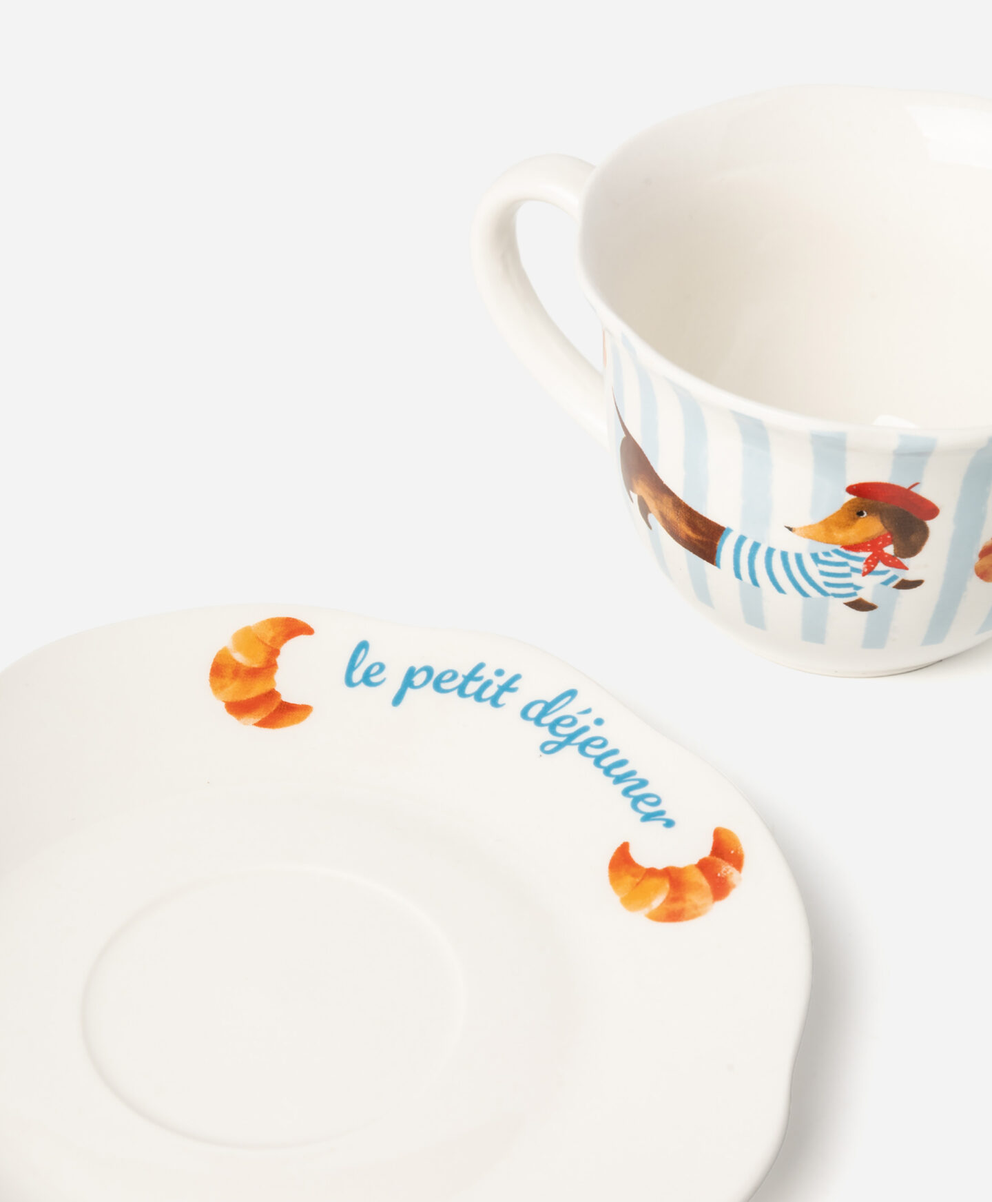 See kivikeraamikas tass ja alustaldrik on võluva disainiga, millel on kujutatud elegantset baretti kandvat taksikoera. Ideaalne cappuccino serveerimiseks piimavahuga, kange musta kohvi kaneeliga või aromaatse teega. Pehme värvilahendus paistab köögis silma ja rõõmustab külalisi. Keraamika on vastupidav, kergesti puhastatav ja säilitab oma kauni välimuse pikka aega. Meie valikust leiad veel selle disainiga sobivaid nõusid.