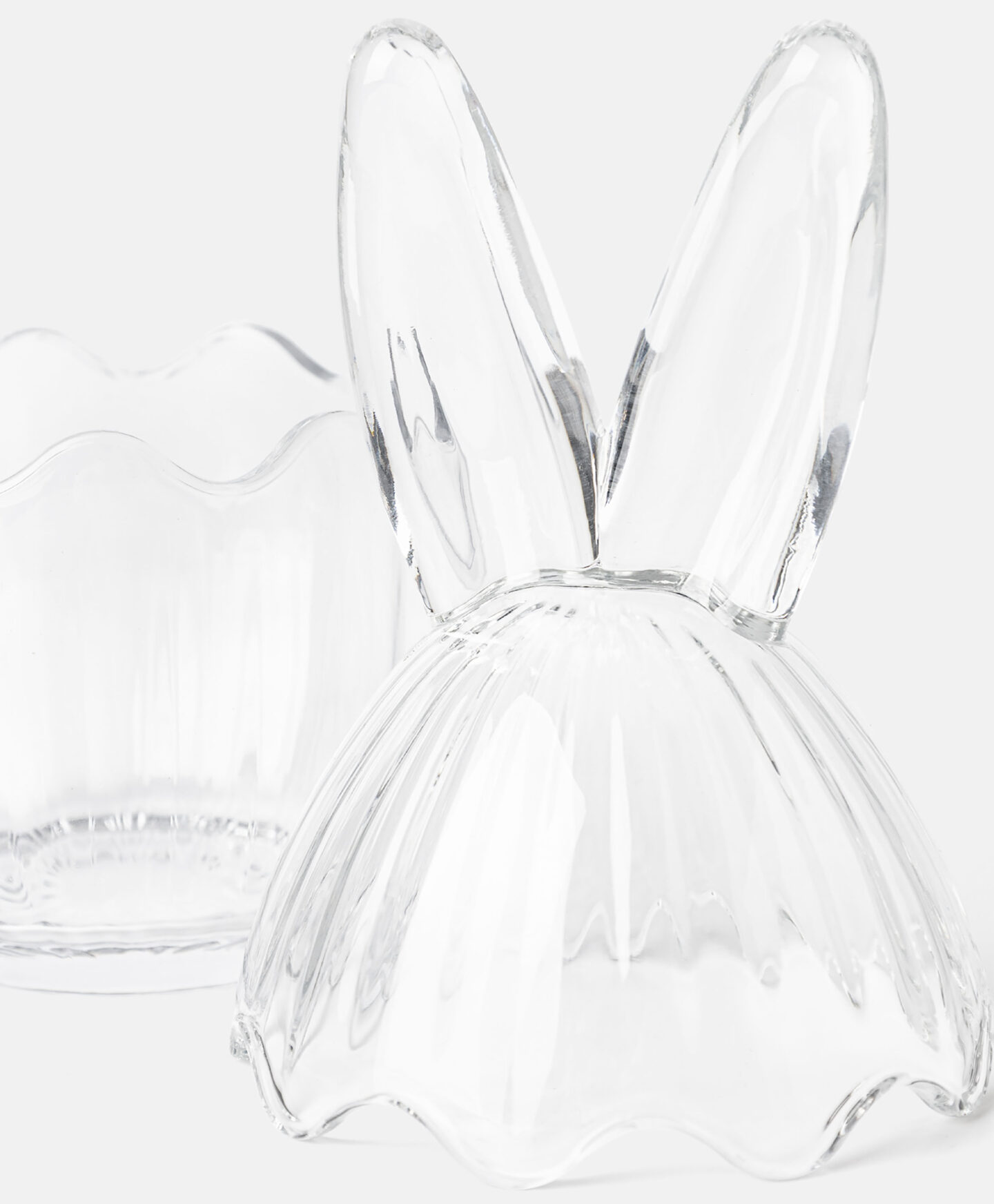 Klaasist kommianum kaanega ja kõrvadega on elegantne lauanõu, mis rõõmustab nii pereliikmeid kui ka külalisi sinu laua ääres. Sobib ideaalselt kommide, pralineede või šokolaadimunade hoiustamiseks. Lihavõtte-teemaline kuju paistab teiste lauanõude seast silma ja lisab pidulikkust ühistele hetkele.