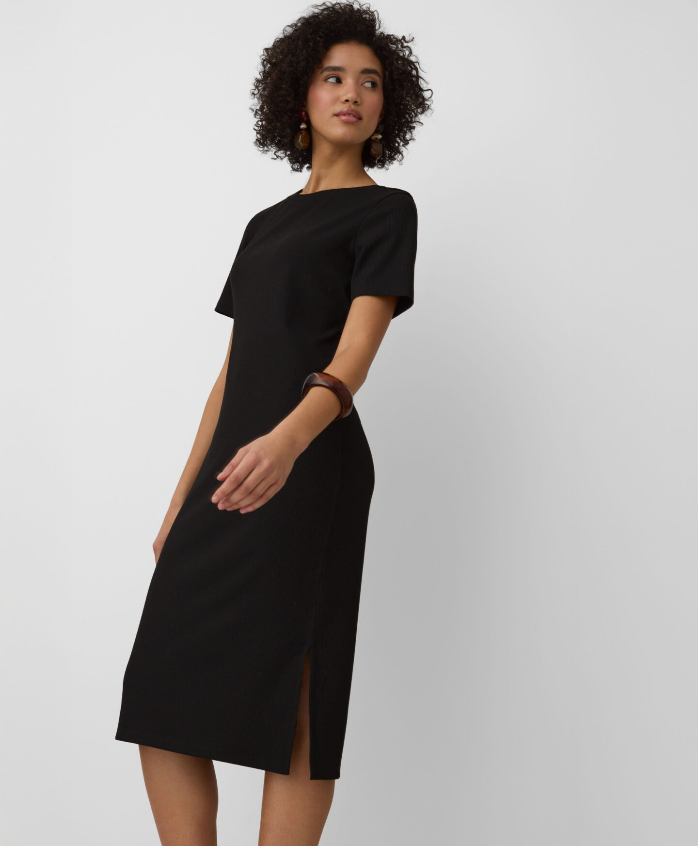 See peenetriibulise mustriga kleit on uskumatult mitmekülgne. Ajatu must värv salendab visuaalselt siluetti, samas kui klassikaline lõige tagab meelitava istuvuse. Pehme materjal pakub võrratut mugavust. See kleit sobib ideaalselt nii igapäevaseks kandmiseks kui ka erilisteks sündmusteks.