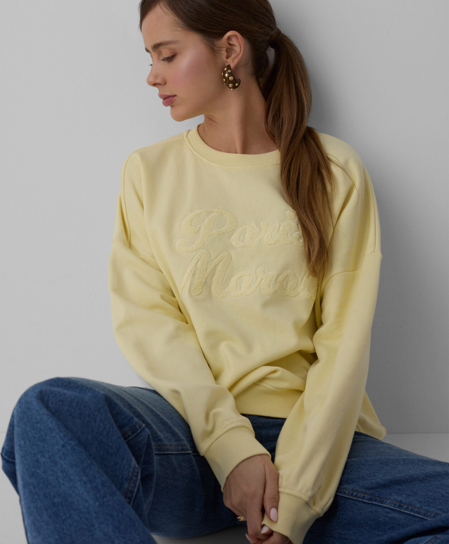 Aplikatsiooniga dressipluus, millel on kõrge puuvillasisaldus, on uskumatult pehme, hingav ja meeldiv puudutusele. See sobib igaks aastaajaks, pakkudes mugavust ja kandmisvabadust. Esiküljel olev dekoratiivne aplikatsioon annab sellele ainulaadse iseloomu.