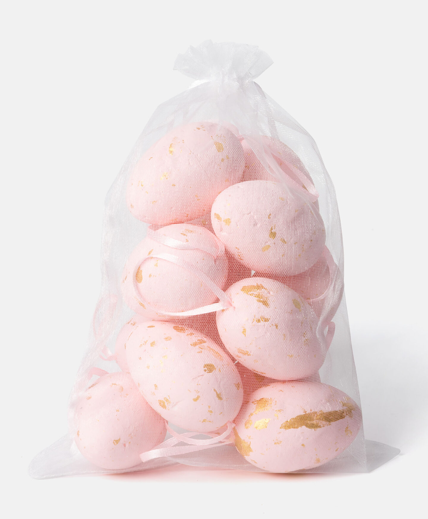 Komplekt roosasid vahtpolüstüroolist mune kotis on praktiline lahendus neile, kes otsivad mitmekülgset materjali kaunistamiseks ja loominguliste käsitööprojektide jaoks. Need on kerged, vastupidavad ja täiesti ohutud. Need sobivad suurepäraselt lauakaunistuseks, asetatuna lauanõude sekka või osana lihavõttekaunistusest. Neid saab panna ka lillepottidesse, lihavõttekaunistustega korvidesse või kasutada lihavõttemunade jahil, kaasates pere noorimaid liikmeid. Saadaval on erinevad kujundused.