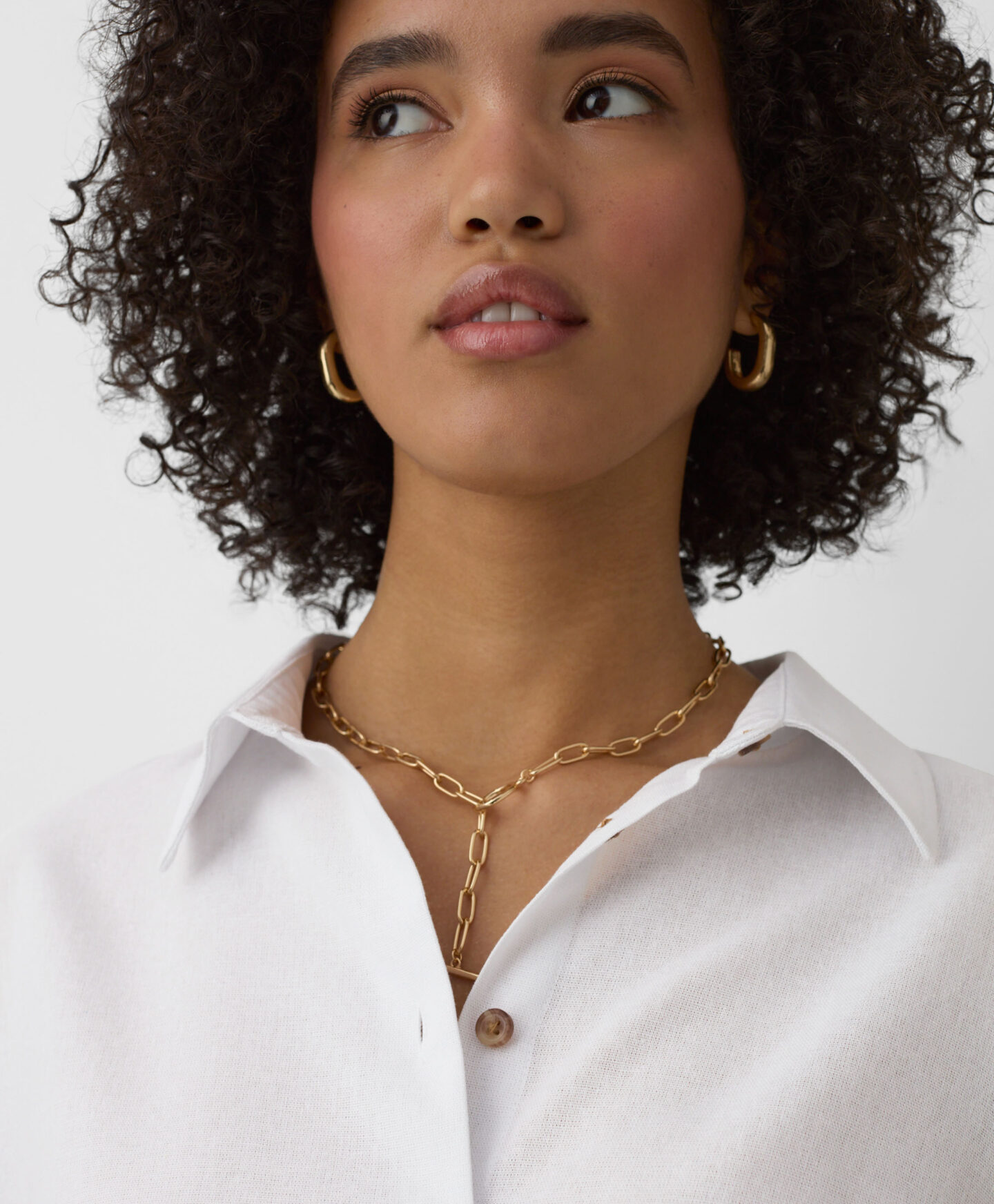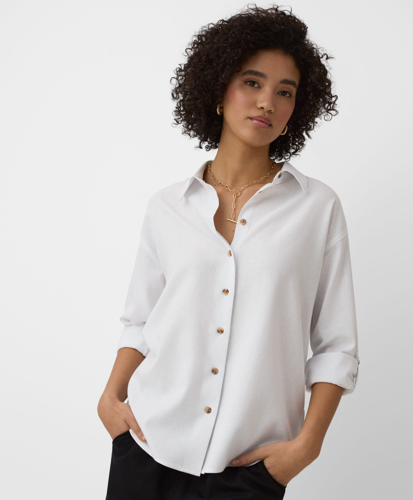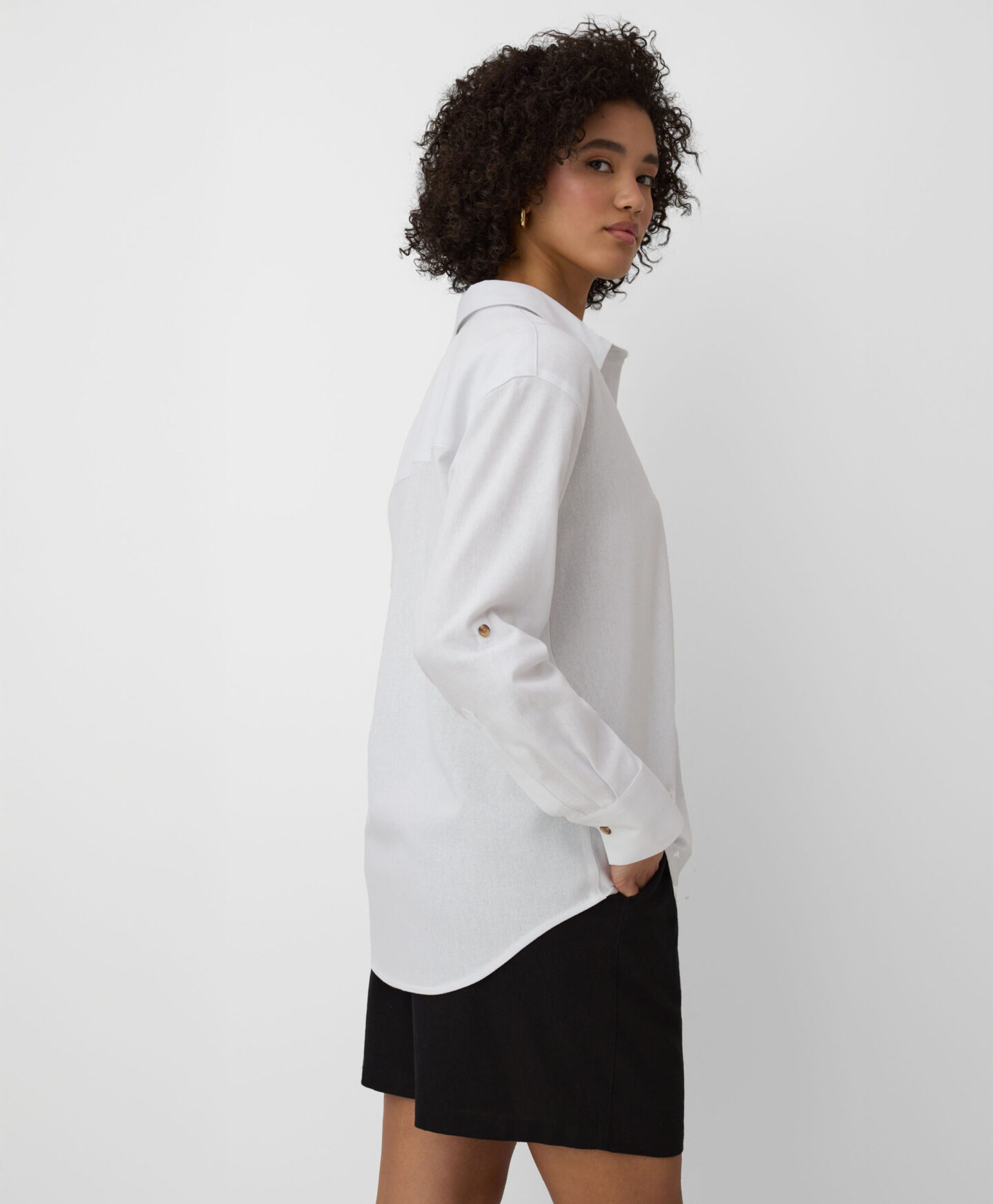 Koszula damska biała świetnie sprawdzi się w ciepłe dni, kiedy zależy Ci na bardziej formalnym wyglądzie. Koszula jest przewiewna i pozwala skórze oddychać, zapewniając komfort przez cały dzień noszenia. W ofercie dostępne dwa warianty kolorystyczne.