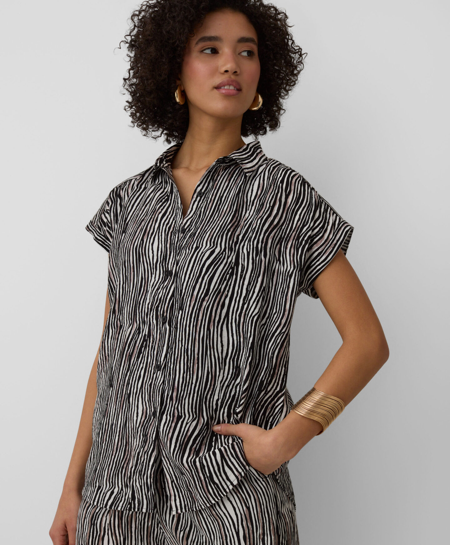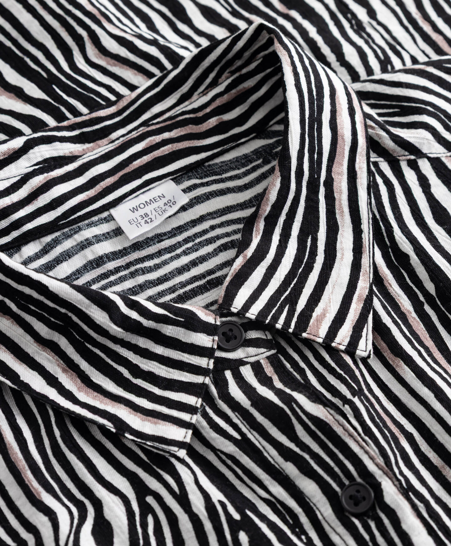Koszula damska 100% wiskozy ma krótki rękaw, który idealnie sprawdzi się w ciepłe dni. Jest zwiewna, lekka i pozwala skórze oddychać. Miękki materiał miło otula Cię, oferując komfort przez cały dzień noszenia. Koszula świetnie będzie prezentować się z szortami, ulubionymi jeansami czy bardziej eleganckimi spodniami.