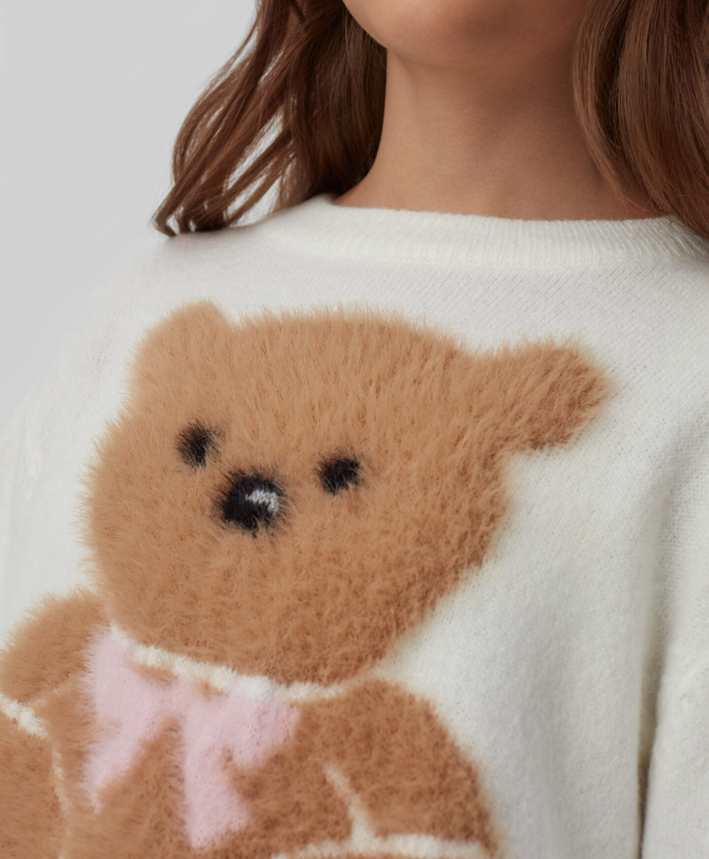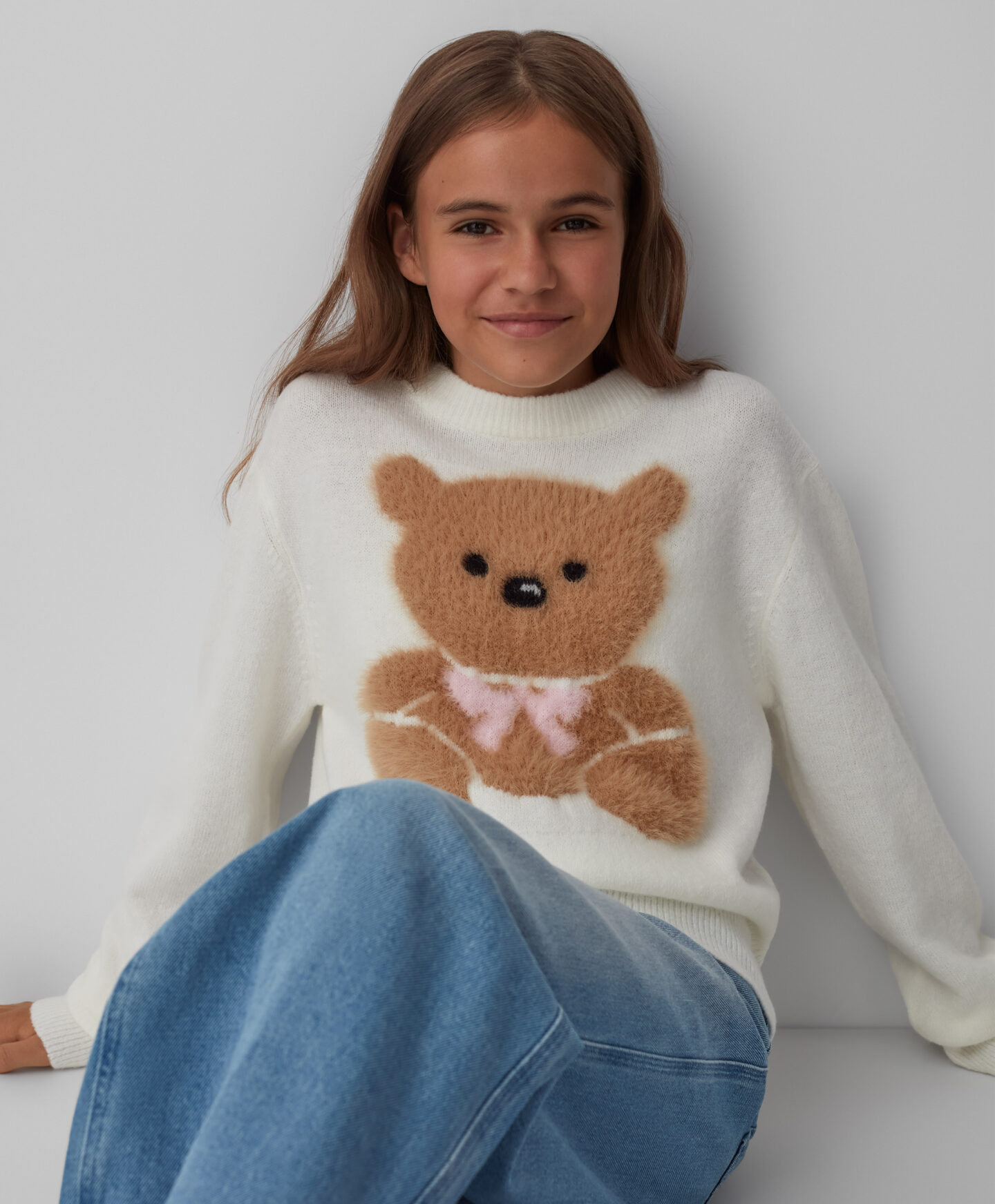 Kreemikas kampsun on selle sügis-talve hooaja tõeline hitt! Armas karu kujundus lisab igale riietusele võluva aktsendi. Sobib suurepäraselt teksade, retuuside või seelikuga, muutes selle ka ideaalseks igapäevaseks koolirõivaks.