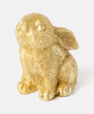 Kuldne polüresiinist jänes köidab tähelepanu oma peene elegantsiga. Polüresiin on kerge ja vastupidav materjal, mis peab vastu ajale ja ilmastikutingimustele, tagades kujukese pikaajalise kvaliteedi. Jänes sobib ideaalselt neile, kes otsivad õrnu ja maitsekaid aktsente. Saadaval on erinevad kujundused.