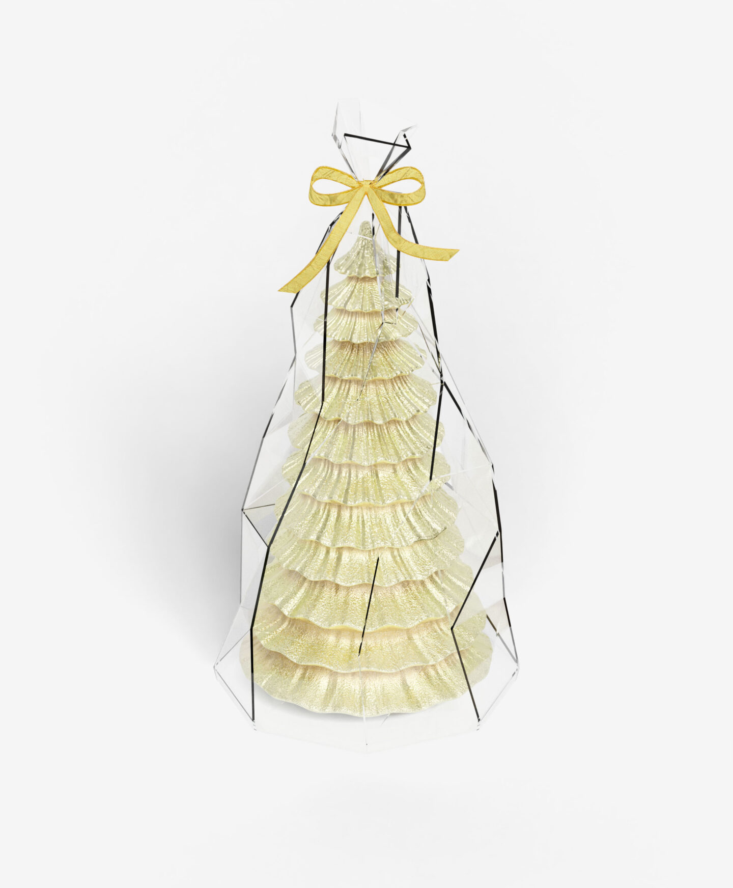 Kuldse tooniga jõulupuu-kujuline küünal toob kohe tuppa piduliku sära. Selle soe peegeldus lisab elegantsi ja võlu ka kõige lihtsamatele seadetele. See kaunistus muudab tavalise õhtu hetkeks, mis on täis jõulumaagiat ja ootusärevust.