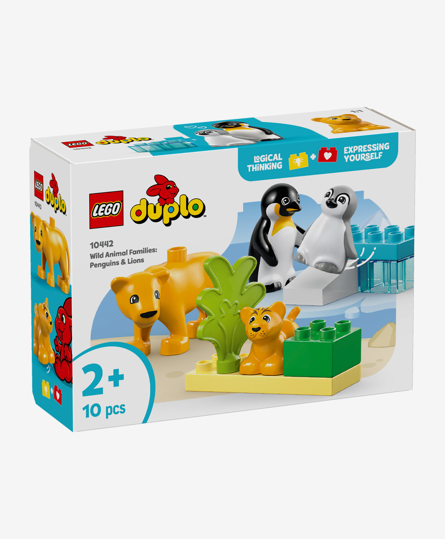 LEGO® DUPLO® metsloomakomplekt pingviinide ja lõvidega toob lapsed loodusele lähemale. Komplekti kuuluvad mängulõvid ja -pingviinid, mida saab kasutada erinevate tegelastega mängimiseks ning loodusrikkuse kohta õppimiseks. Suuri klotse on lihtne kokku panna ja need on ohutud ka väiksemate laste jaoks. Mängukomplekt tiivustab kujutlusvõimet ja tekitab uudishimu.