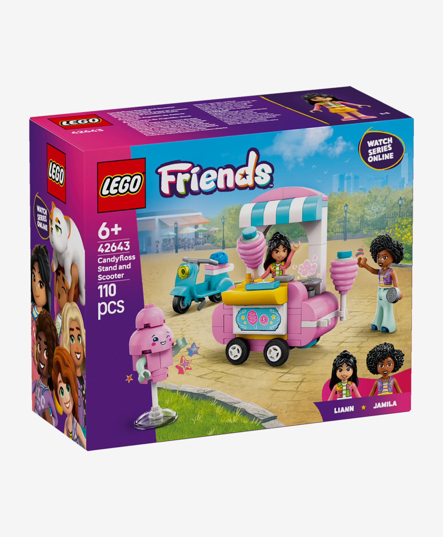 LEGO® FRIENDSI komplekt suhkruvatikioski ja rolleriga loob lõbusa laadakeskkonna. Värviline suhkruvatikiosk ja väikesed tegelased muudavad mänguaja realistlikumaks. Komplekti kuuluva rolleriga saab tegelased sõidutada uutele seiklustele.