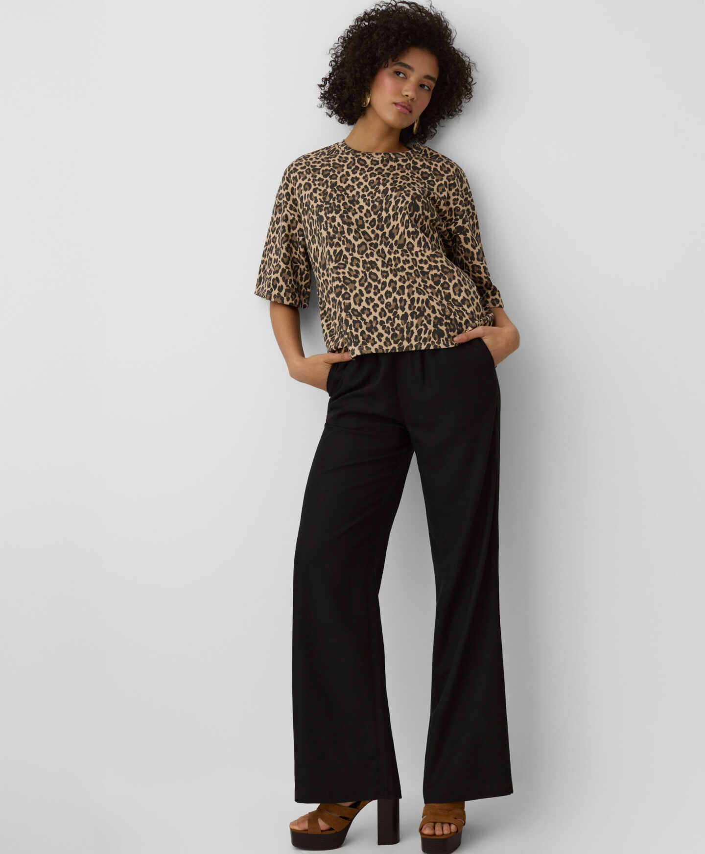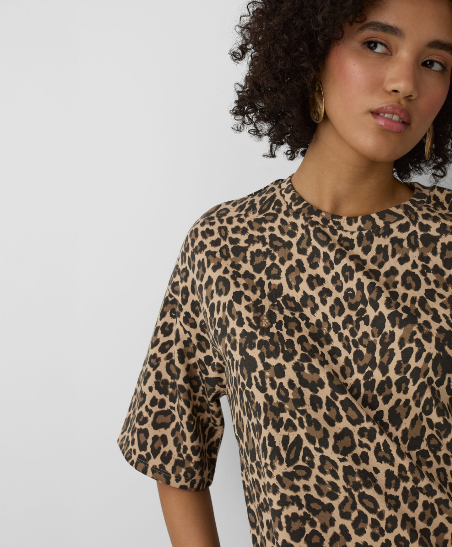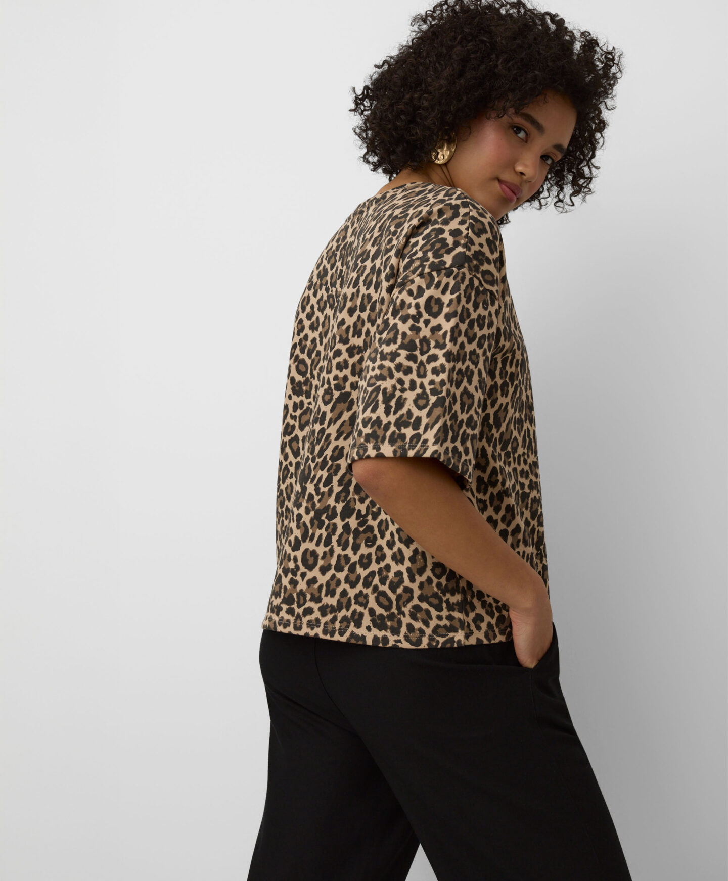 See leoparditrükiga T-särk sobib ideaalselt loomatrüki austajatele. Lühem ja laiem lõige meeldib kindlasti igale vabaaja stiili austajale. Näeb suurepärane välja nii pükste, laiade lühikeste pükste kui ka teksadega.