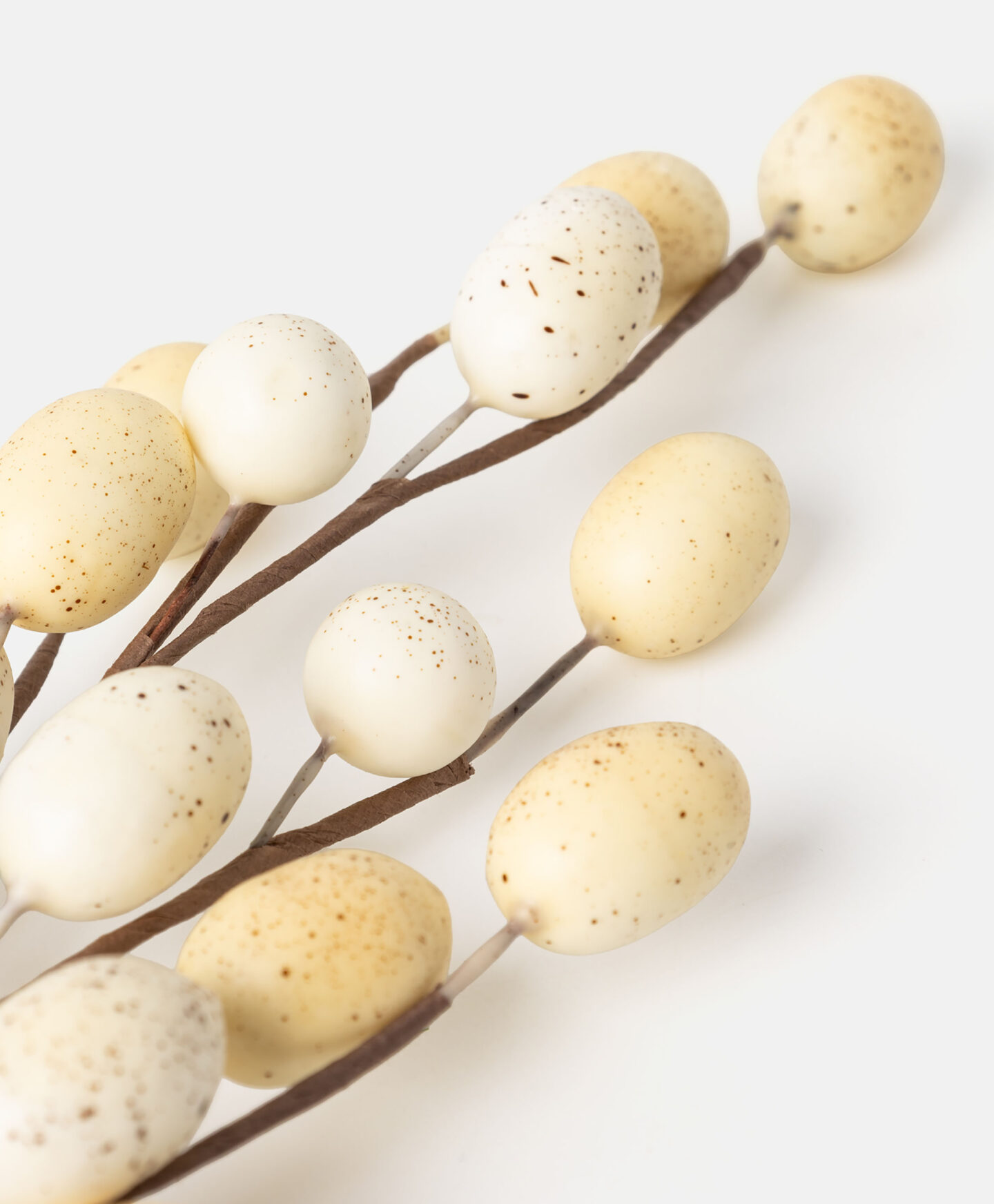 Lihavõttemunadega oks loob igas interjööris lihavõttemeeleolu. See sobib hästi nii korvielemendiks kui ka piduliku laua kaunistuseks. Aseta see potti või aseta see vabalt laudlinale, et lihavõttehommikusöögi ajal silmailu pakkuda.