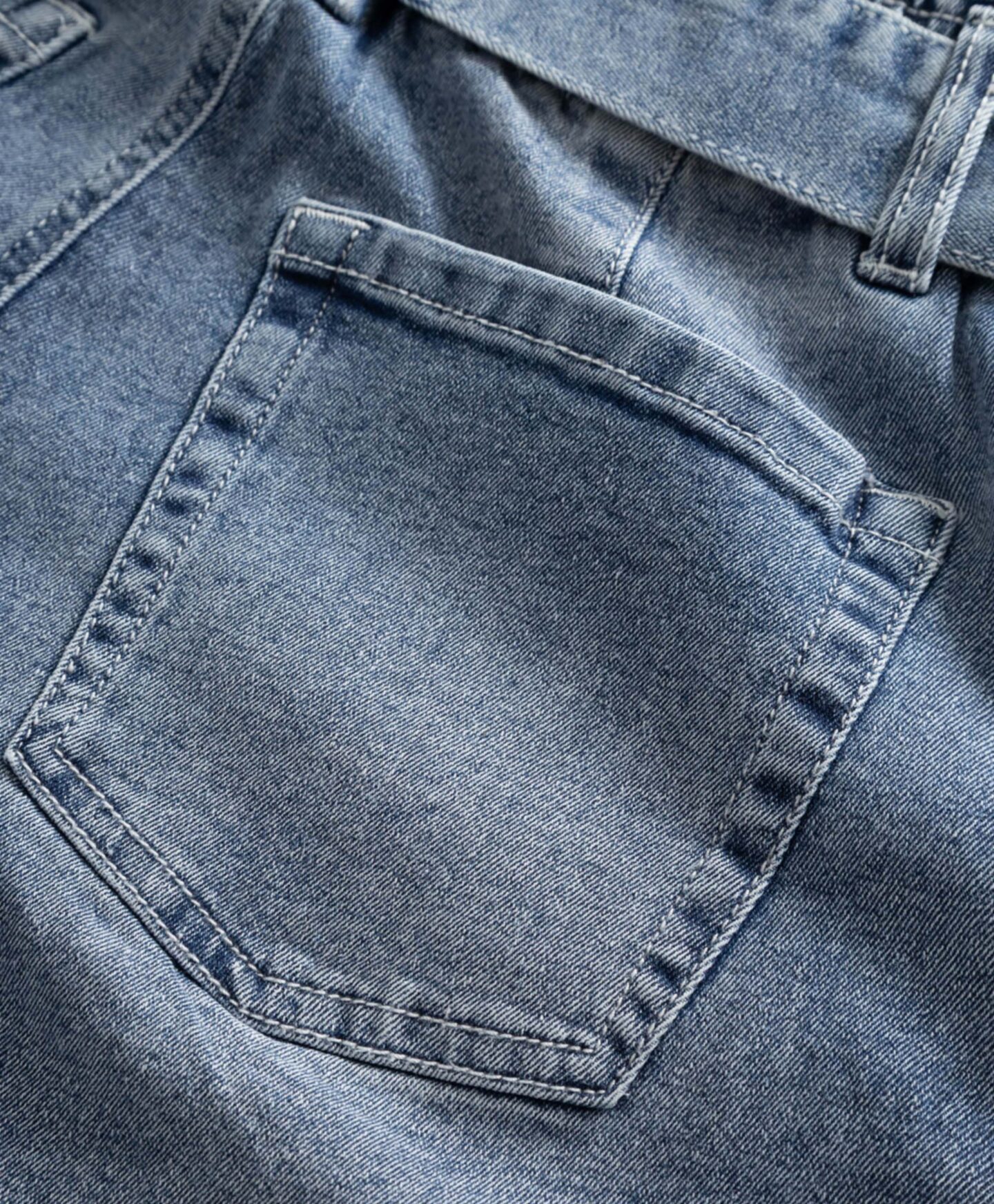 Lühikesed teksapüksid on klassikalise teksase ja selle hooaja viimaste moesuundade ideaalne kombinatsioon. Hoolikalt läbimõeldud kõrge vööjoonega lõige rõhutab kaunilt taljet ja pikendab visuaalselt jalgu. Pehme, kuid vastupidav teksas, millele on lisatud elastsed kiud, tagab täieliku liikumisvabaduse.