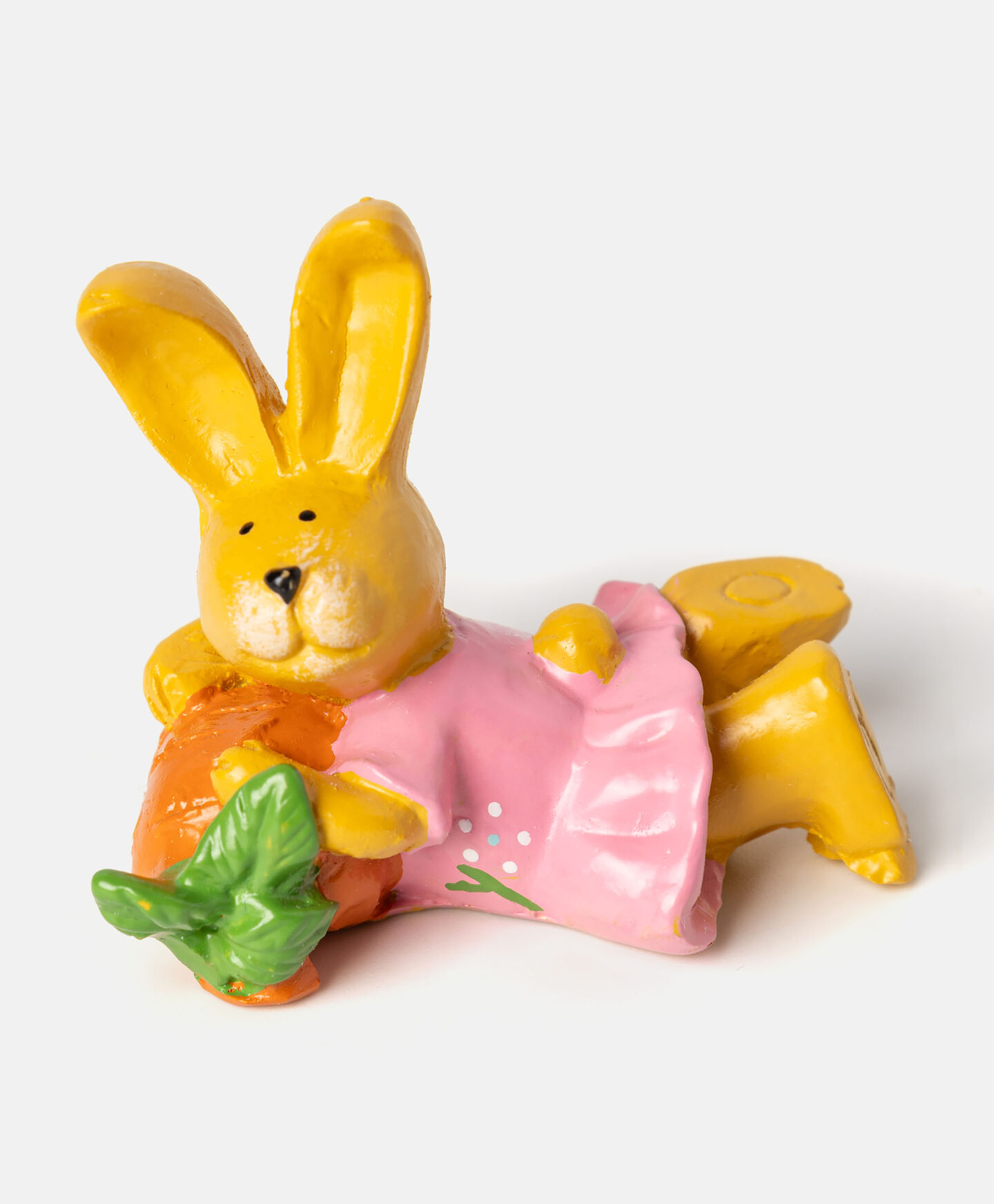Mini lihavõttejänese kingikotis on valmis kink. Polüresiin on vastupidav, kerge materjal, mis on kahjustuste- ja värvitugev, tagades kujukese pika eluea. Selle võluv disain rõõmustab nii nooremaid kui ka vanemaid kingisaajaid.