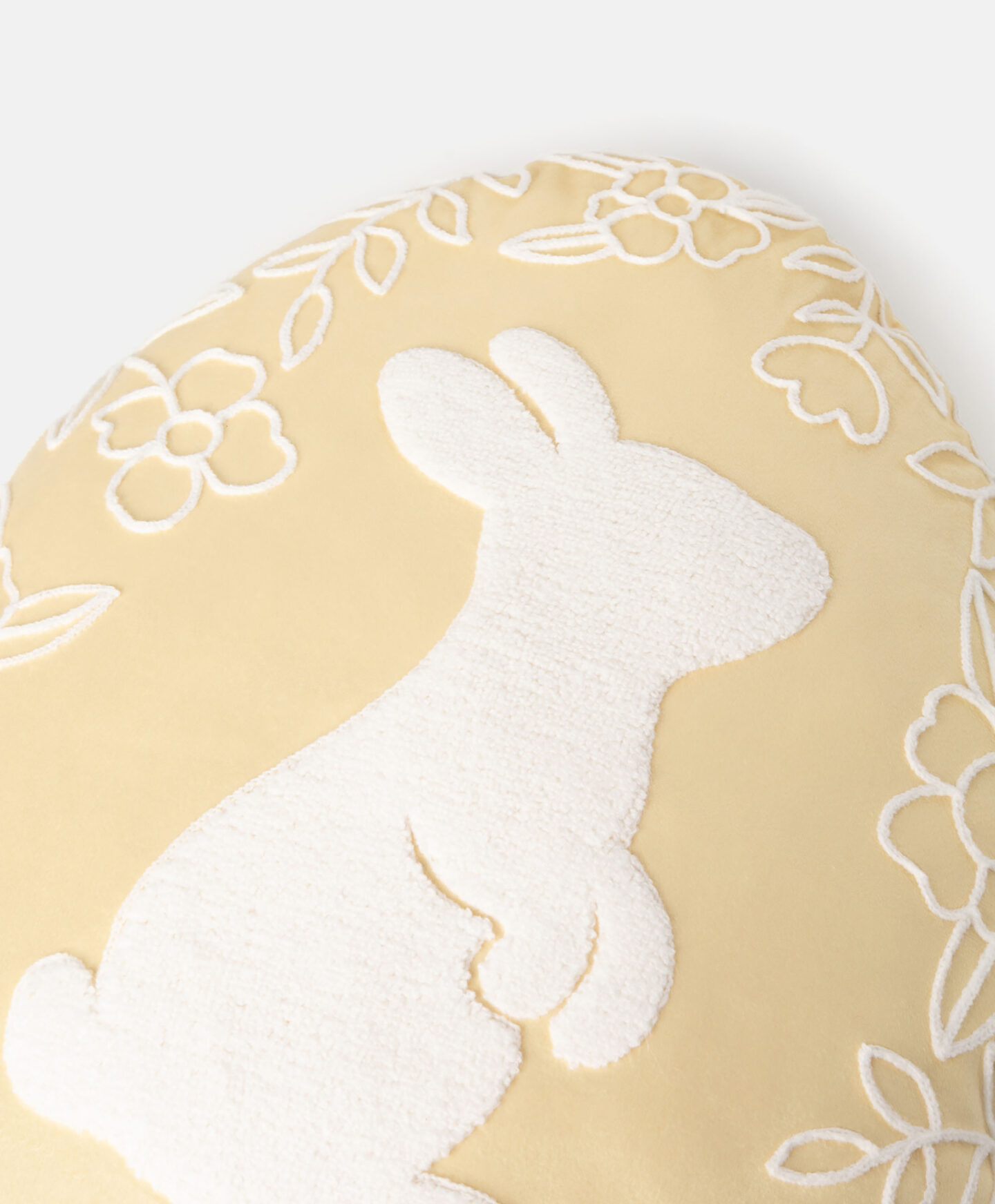 Munakujuline padi toob koju pidulikku meeleolu. See on pehme ning kaunistatud koheva tikitud lihavõttejänesega. Sobib ideaalselt diivanile, tugitooli või voodi peale ning annab pühade meeleolu nii elutoas, magamistoas kui ka lapse toas.